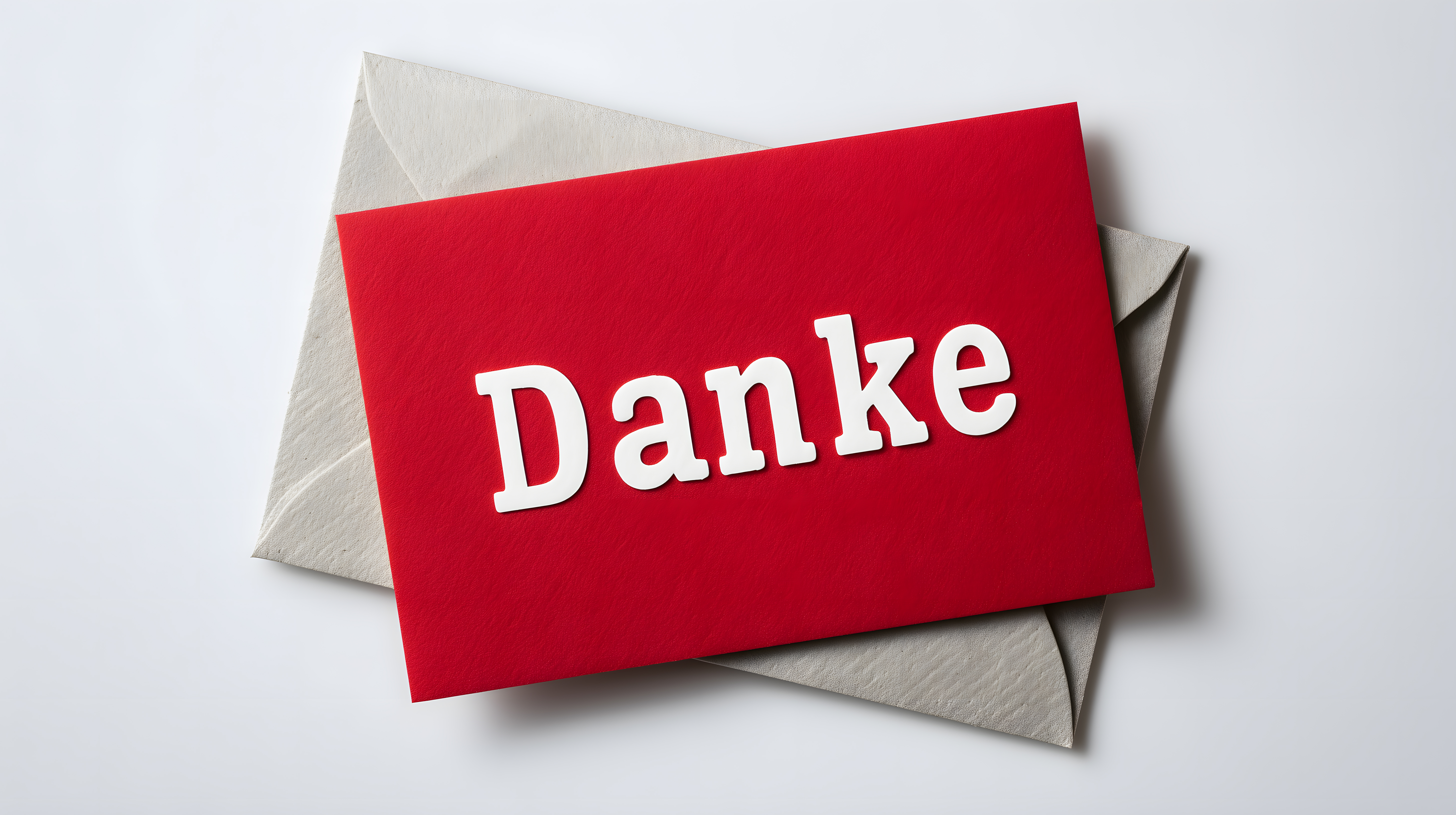 Das Bild zeigt eine rote Danksagungskarte, die auf einem hellen Untergrund liegt. Die Karte ist einfach gestaltet, mit einem weißen, prominenten 'Danke'-Schriftzug in der Mitte. Neben der Karte befindet sich ein grauer Umschlag, der den Eindruck eines hochwertigen, handschriftlichen Briefes vermittelt. Das minimalistische Design und der klare Fokus auf die Karte selbst machen dieses Foto zu einem idealen Bild für Einladungen, Grußkarten oder Geschenke, bei denen man Dankbarkeit und Wertschätzung zum Ausdruck bringen möchte. Mit der hohen Auflösung und der Lizenz für die Verwendung als kostenloses Stockfoto eignet sich das Bild hervorragend für Blog-Artikel, Social-Media-Posts oder Werbematerialien aller Art.
