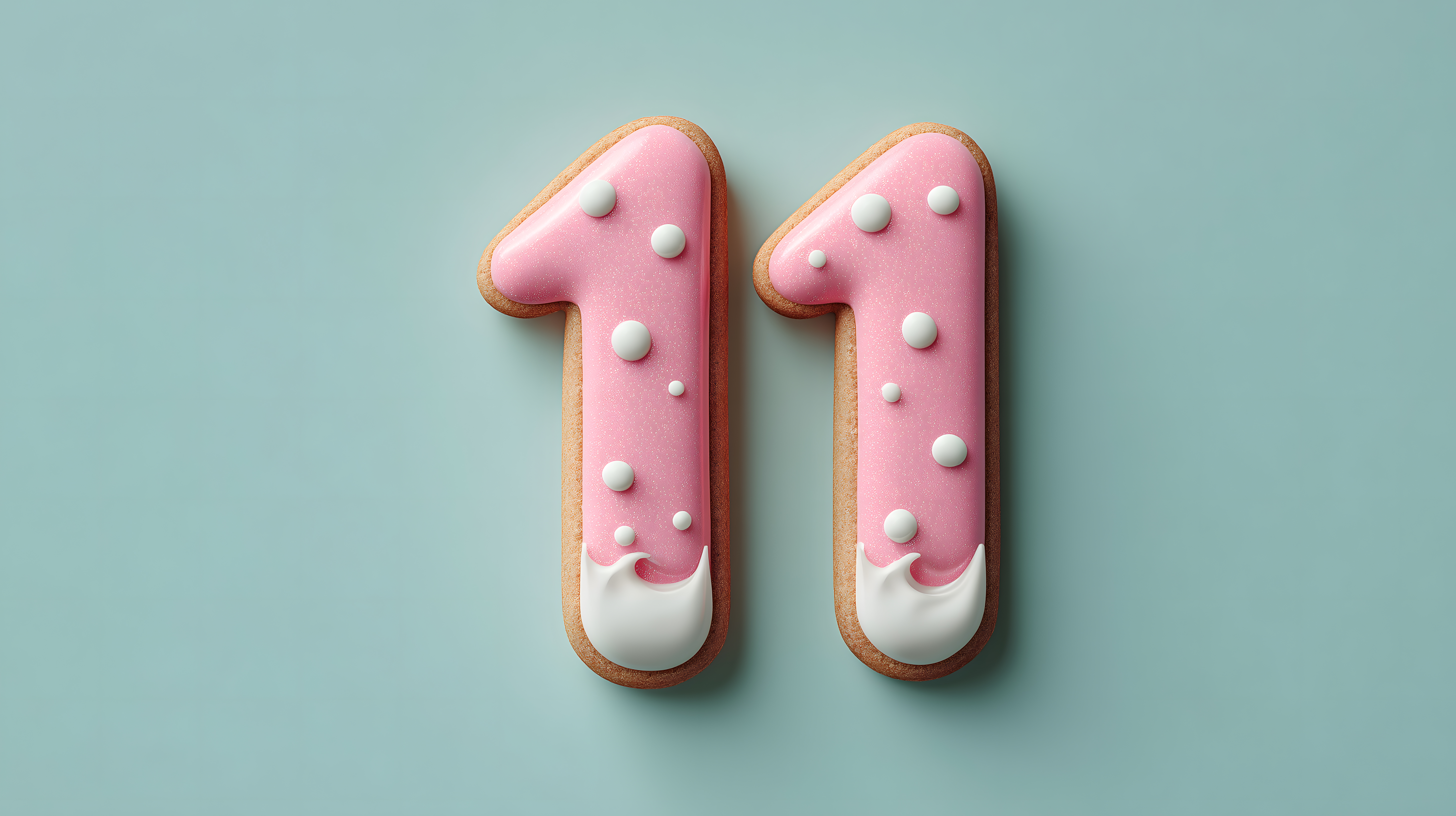 Das Bild zeigt zwei in rosa Zuckerguss getauchte Kekse in Form der Zahl 11, dekoriert mit weißen Punkten auf einem türkisfarbenen Hintergrund. Diese süßen Gebäckstücke könnten ideal für Geburtstagsfeiern, Partys oder andere Feiern verwendet werden. Die minimal gehaltene Komposition und die pastelligen Farben verleihen dem Foto einen modernen, eleganten Charakter. Als hochwertiges Stockfoto ist dieses Bild für eine Vielzahl von Anwendungen geeignet, z. B. für Blogbeiträge, Newsletter, Social-Media-Posts oder Werbematerialien. Das Foto steht unter einer Creative-Commons-Lizenz und ist in hoher Auflösung verfügbar.