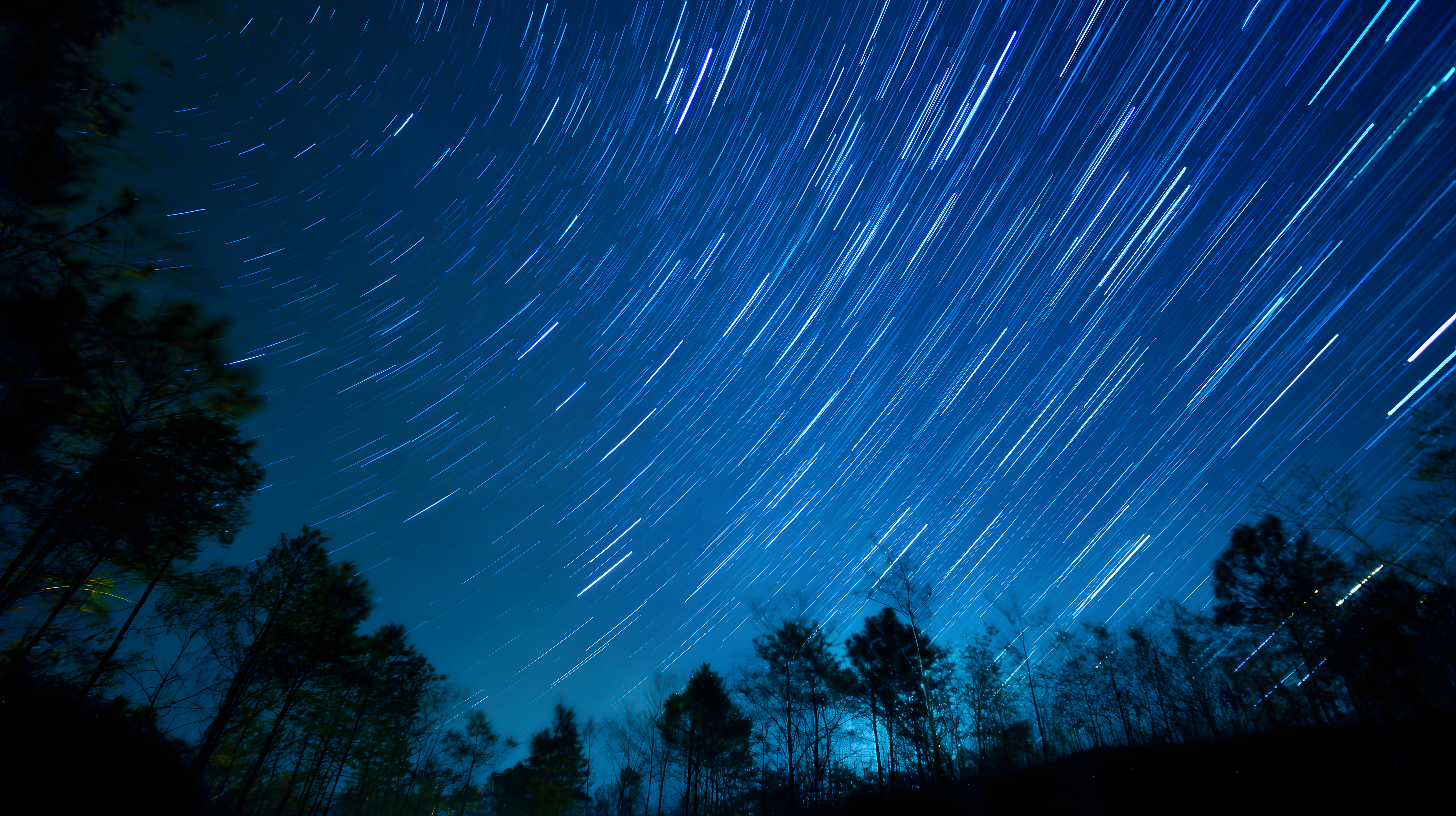 Dieses beeindruckende Bild zeigt den Nachthimmel über einer Waldlandschaft. Der weite, dunkelblaue Himmel ist übersät mit unzähligen Sternen, die sich in langen Lichtspuren über das Bild ziehen. Die Silhouetten der Bäume am Horizont heben sich dunkel vom Sternenmeer ab und verleihen der Szene eine mystische Stimmung. Dieses stimmungsvolle Foto ist ideal als freie, hochauflösende Stock-Aufnahme für Hintergrundbilder, Werbung oder die Verwendung in Blogbeiträgen, Newslettern und auf Social-Media-Kanälen geeignet. Das Bild steht unter der Creative-Commons-Lizenz und kann kostenlos genutzt werden.