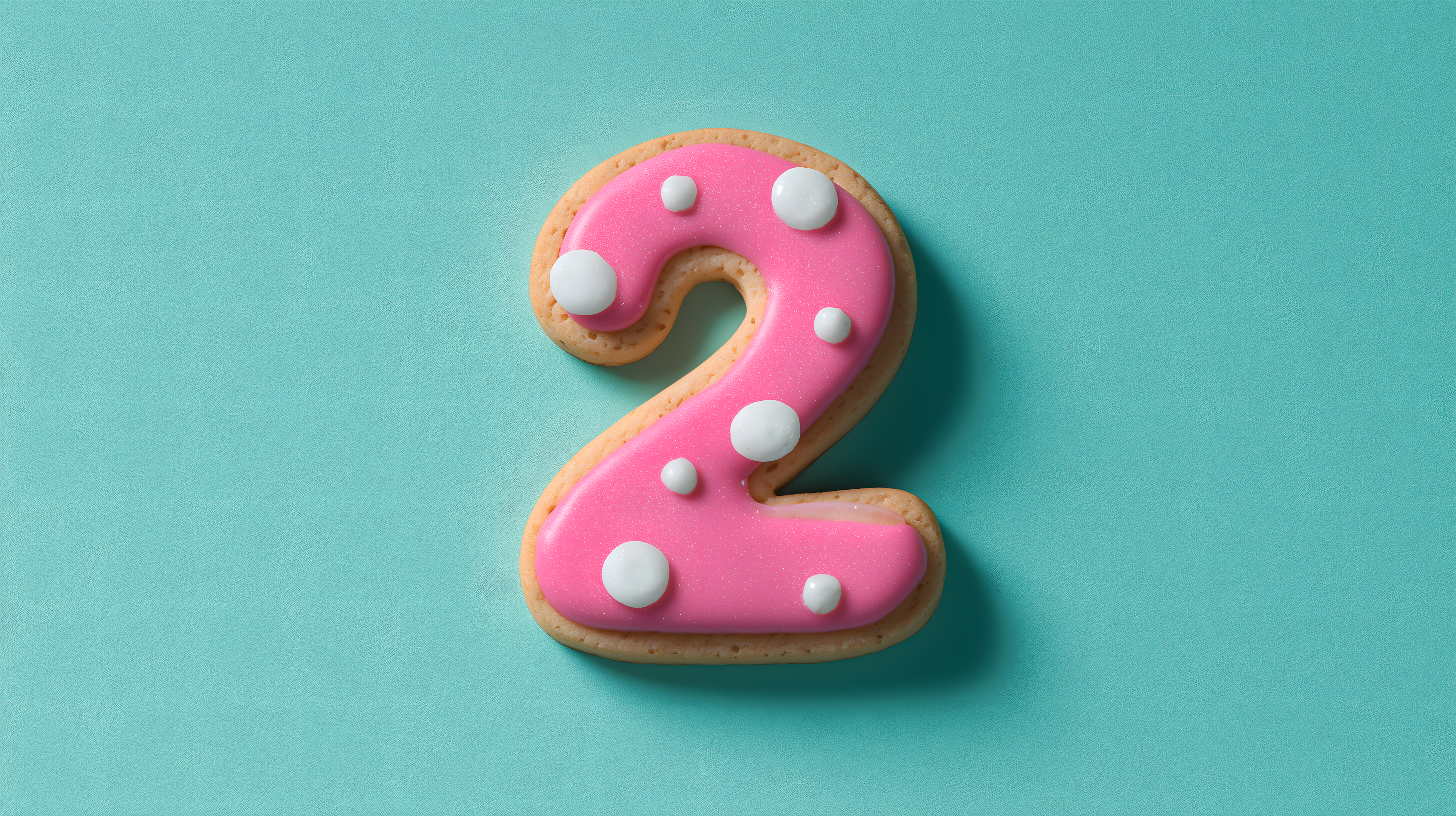 Dieses fröhliche Foto zeigt einen rosafarbenen Keks in Form der Zahl 2, dekoriert mit weißen Punkten. Der Keks liegt vor einem türkisfarbenen Hintergrund, was einen stimmungsvollen und modernen Kontrast erzeugt. Das Bild eignet sich hervorragend als Foto für Blogs, Newsletter, Social-Media-Posts oder Werbematerial rund um Backen, Süßigkeiten, Kindergeburtstage oder Geburtstagsfeiern. Als hochwertiges, kostenloses Stockfoto unter Creative-Commons-Lizenz kann es vielseitig eingesetzt werden.