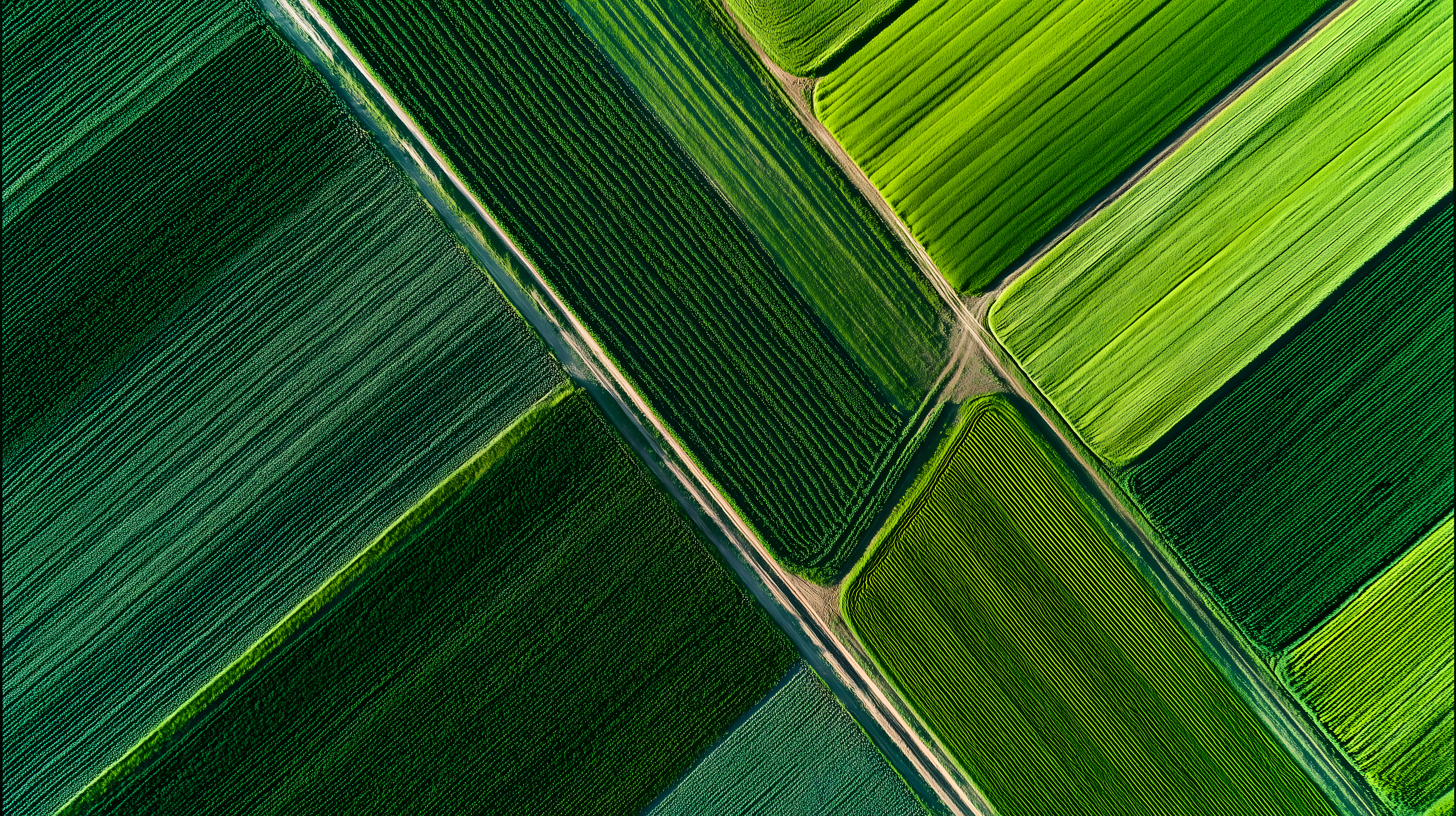 Diese beeindruckende Luftaufnahme zeigt ausgedehnte, grüne Ackerflächen mit präzisen, geometrischen Linien und Strukturen. Die Perspektive von oben lässt die Komposition und das Muster der Felder klar hervortreten. Die satten Grüntöne und die klaren Konturen schaffen ein grafisches, fast abstraktes Bild der Landschaft. Dieses hochauflösende Foto eignet sich hervorragend als Hintergrundbild oder grafisches Element für Blogs, Newsletter, Werbung und Social-Media-Beiträge rund um die Themen Natur, Landwirtschaft oder Umwelt. Es steht unter der Creative-Commons-Lizenz zur kostenfreien Verwendung zur Verfügung.