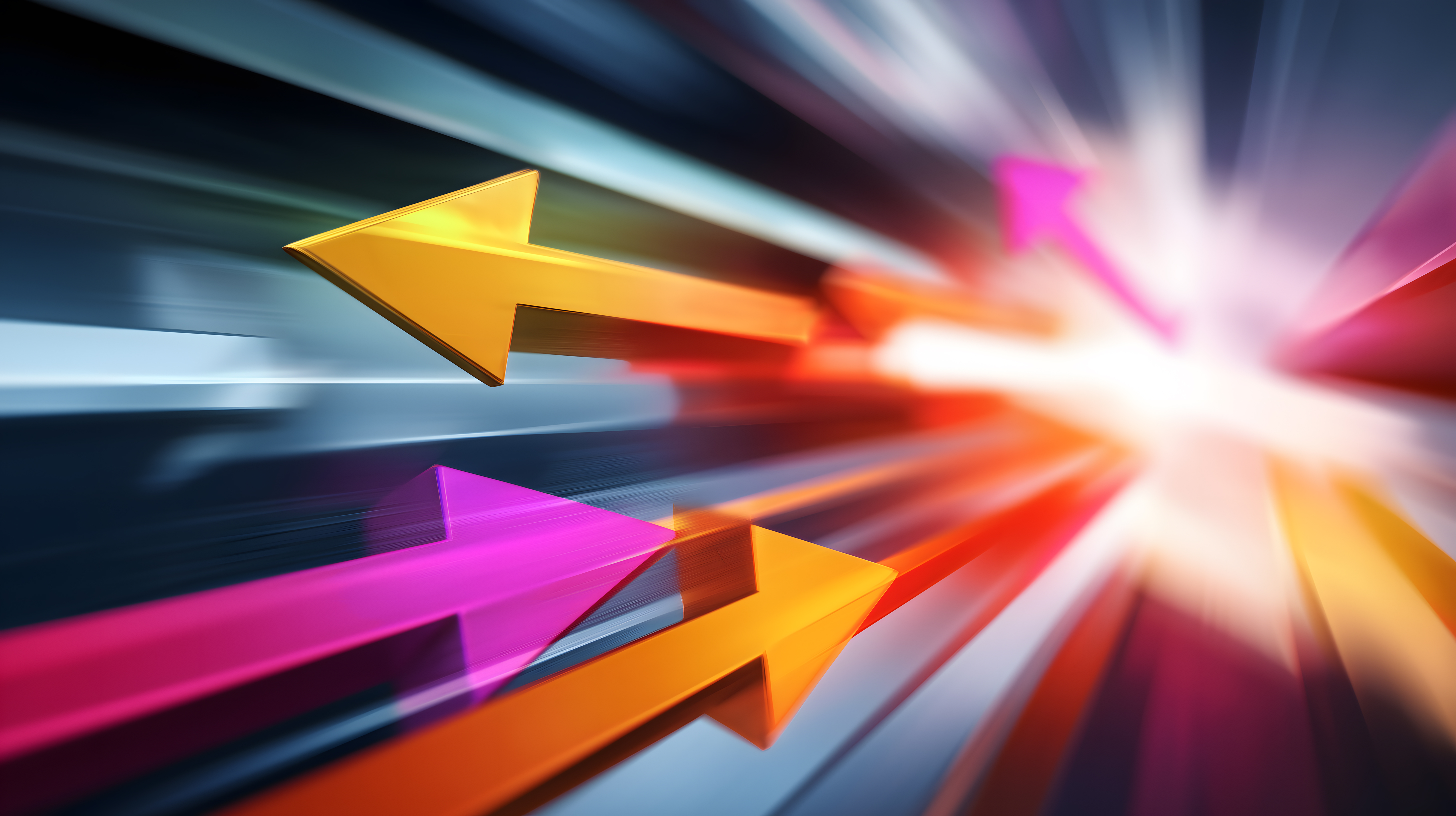 Dieses dynamische Bild zeigt eine Komposition aus bunten, pfeilförmigen Elementen, die sich in verschiedene Richtungen zu bewegen scheinen. Die Elemente stellen einen abstrakten, visuell ansprechenden Hintergrund dar, der eine Stimmung von Bewegung, Energie und Fortschritt vermittelt. Das Foto eignet sich hervorragend für den Einsatz in Werbung, Marketing und digitalen Medien, wo es einen modernen, kreativen Akzent setzen kann. Es ist in hoher Auflösung verfügbar und kann unter einer Creative Commons-Lizenz kostenfrei verwendet werden.
