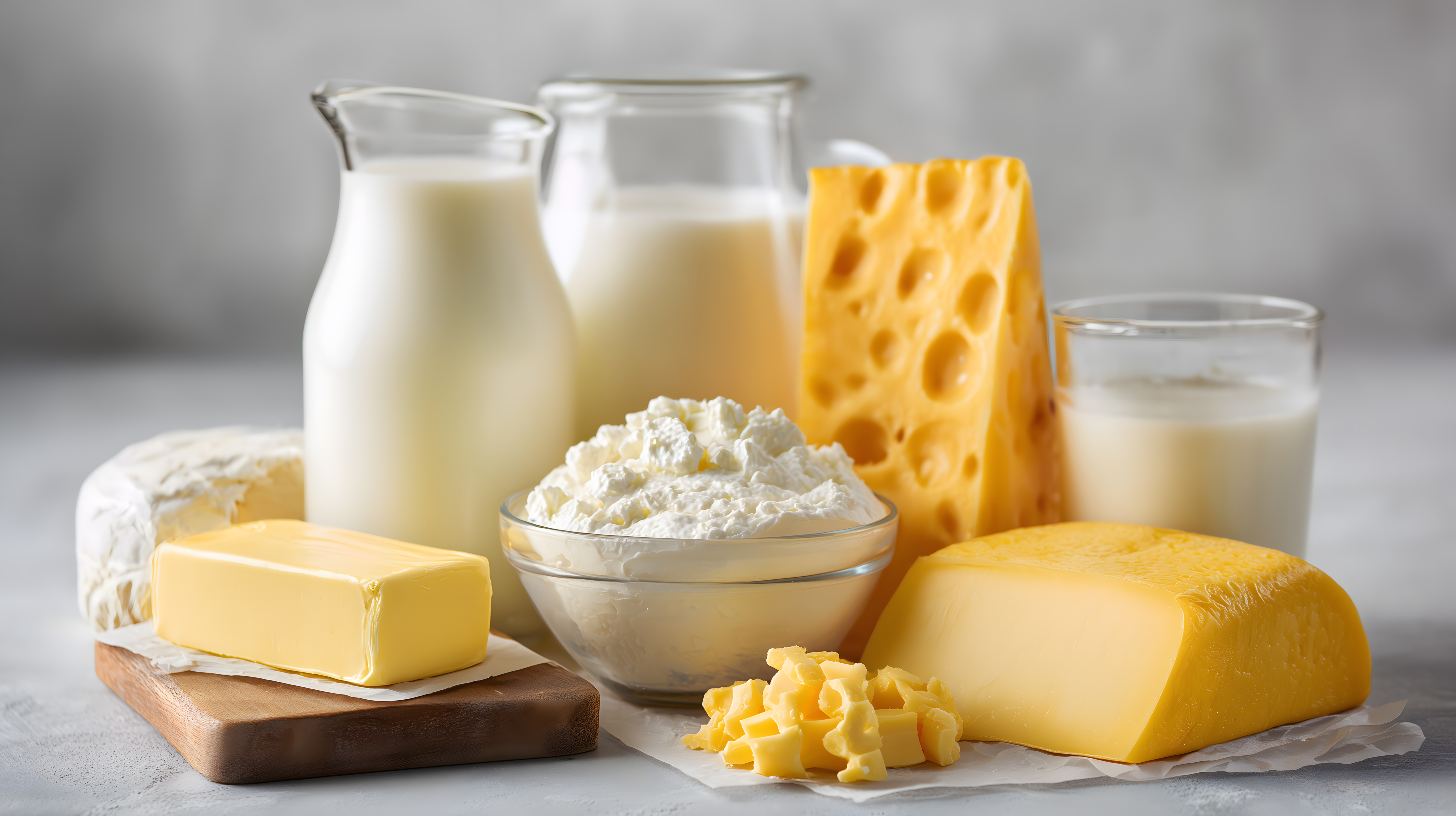 Dieses Foto zeigt eine attraktive Zusammenstellung verschiedener Milchprodukte wie Käse, Butter und Quark auf einem hellen Hintergrund. Die Anordnung der Objekte in neutralen Farbtönen sowie die saubere und minimalistische Präsentation vermitteln einen frischen, natürlichen und hochqualitativen Eindruck. Das Bild eignet sich hervorragend als kostenloses Stockfoto für Anwendungen im Bereich Ernährung, Lebensmittel, Gesundheit oder Kulinarik, etwa für Blogs, Newsletter, Social-Media-Posts oder Werbematerialien. Die hohe Auflösung und Creative-Commons-Lizenz machen dieses Foto zu einer vielseitig einsetzbaren Ressource.
