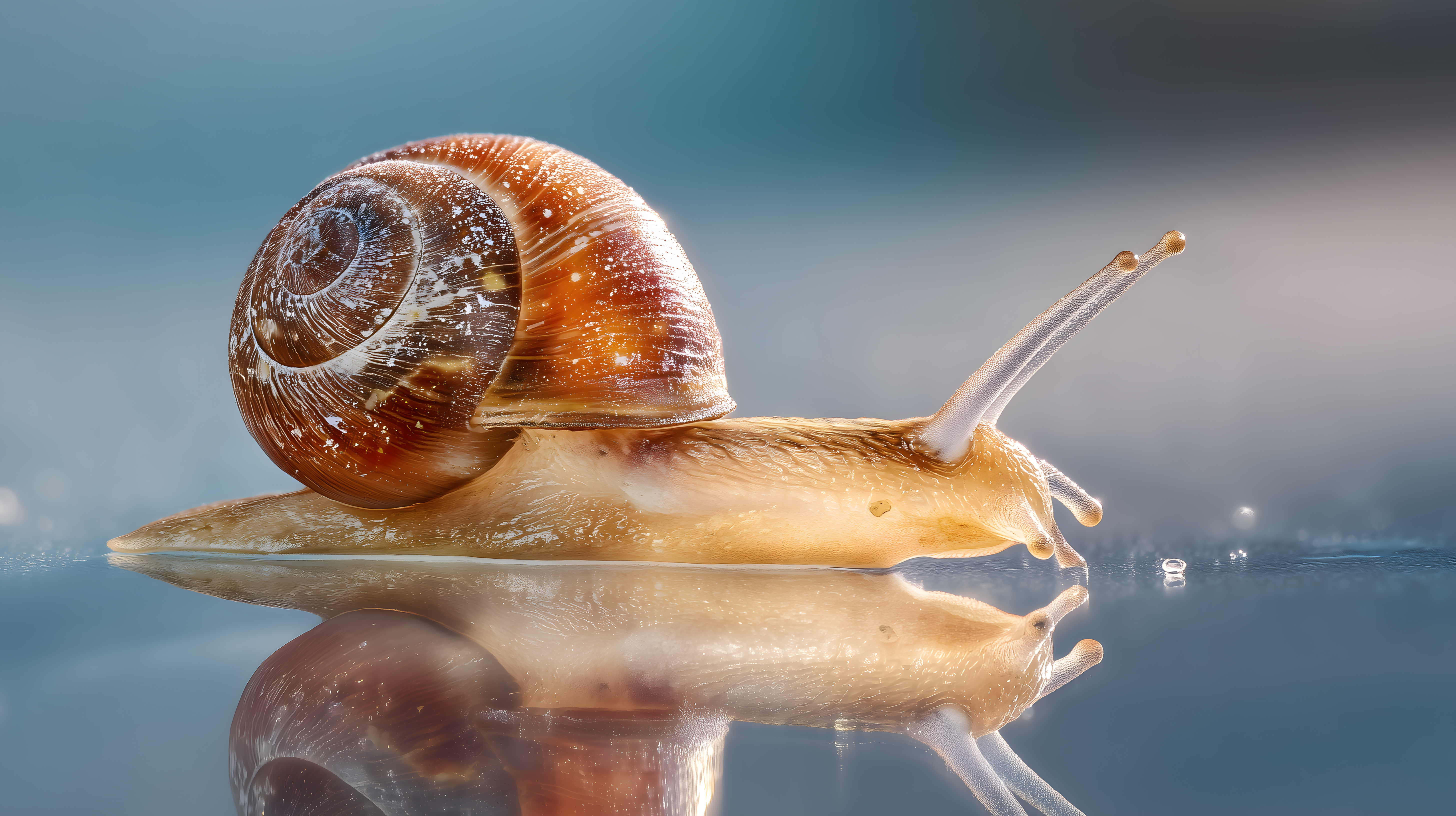 Dieses faszinierende Foto zeigt eine Nahaufnahme einer Schnecke, die auf einer spiegelnden Oberfläche sitzt. Das Bild ist in kräftigen Farbtönen gehalten, die die Strukturen und den Glanz des Tieres betonen. Der Fokus liegt auf der spiralförmigen Schale der Schnecke, deren Details deutlich erkennbar sind. Die Reflexion auf der Wasseroberfläche verleiht dem Motiv eine zusätzliche Dimension und Tiefe. Dieses kostenloses Stockfoto in hoher Auflösung ist unter einer Creative-Commons-Lizenz verfügbar und eignet sich hervorragend für den Einsatz in Blogs, Newslettern, Social-Media-Beiträgen oder Werbematerialien.