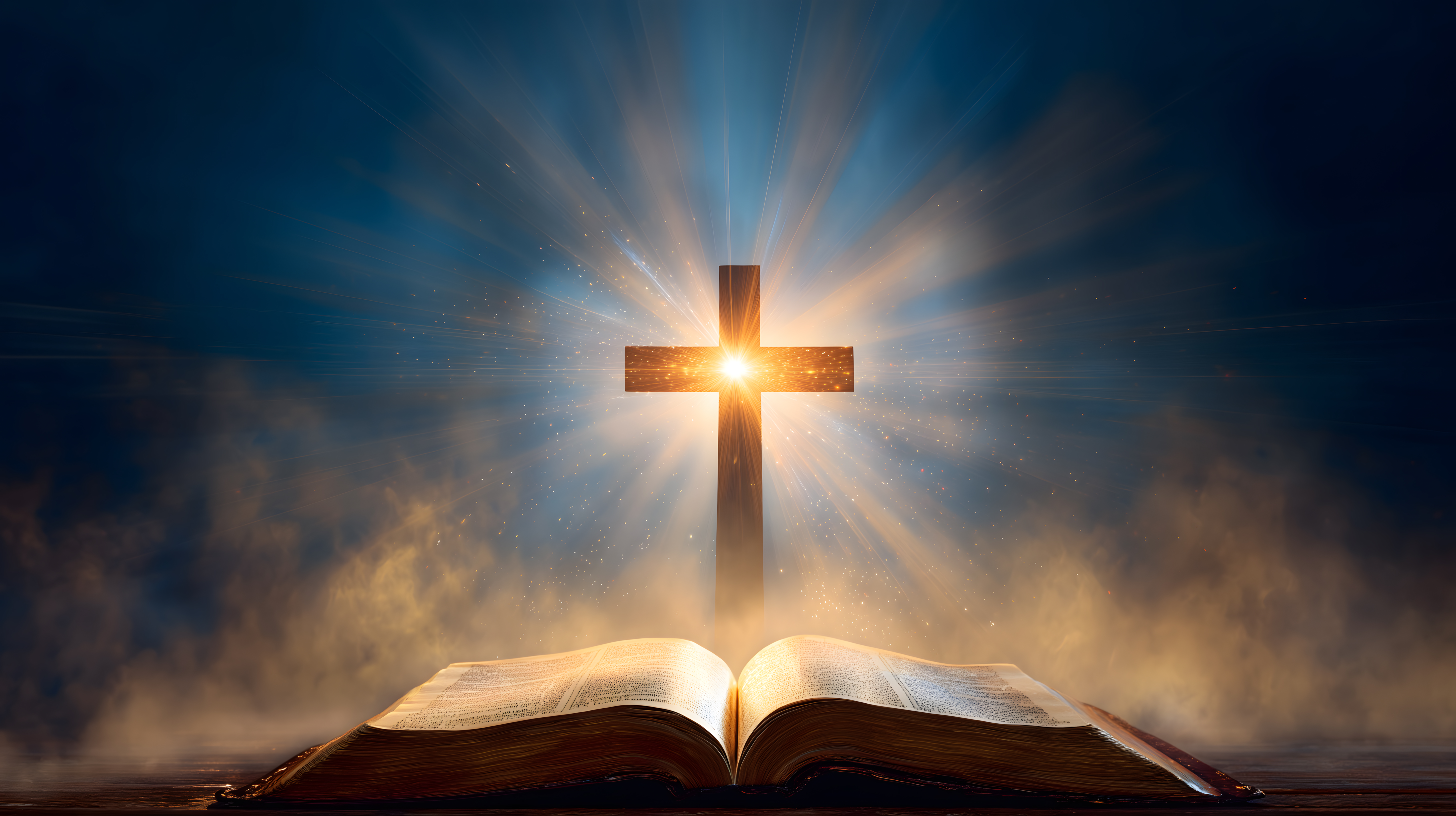 Dieses beeindruckende Bild zeigt eine strahlende Kruzifixdarstellung vor einem düsteren, wolkigen Himmel. Die hölzerne Kreuzform strahlt ein warmes, goldenes Licht aus, das die gesamte Szene in einem spirituellen, fast mystischen Glanz erscheinen lässt. Die Bibel, die sich im Vordergrund öffnet, verstärkt den religiösen und meditativen Charakter des Motivs. Diese Aufnahme eignet sich hervorragend für die Verwendung in Blogs, Newslettern, Social-Media-Beiträgen oder Werbematerialien mit Themen rund um Glauben, Spiritualität und christliche Symbolik. Als hochauflösendes Stockfoto unter einer Creative-Commons-Lizenz steht das Bild kostenlos für verschiedenste Einsatzzwecke zur Verfügung.
