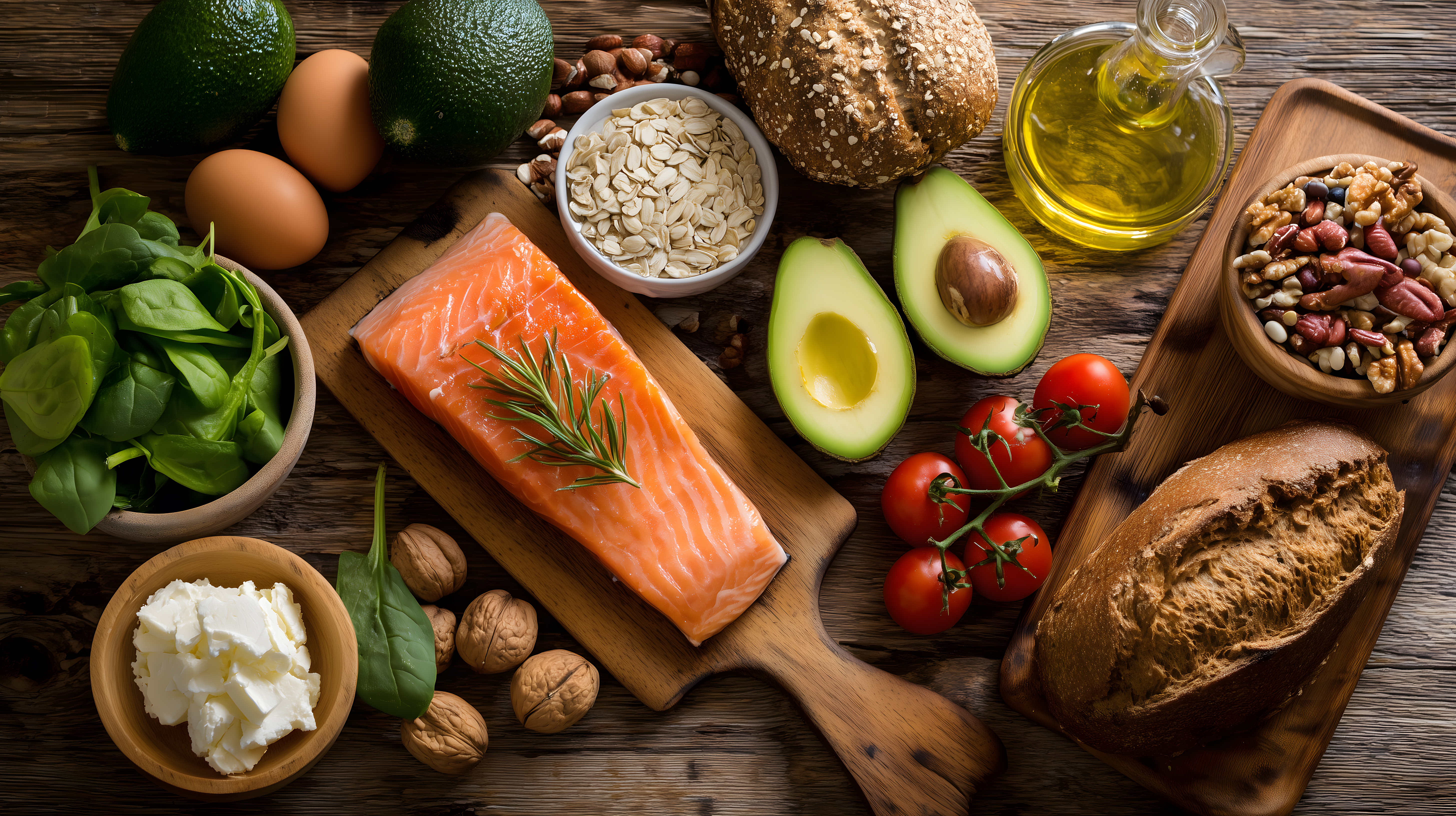 Dieses Foto zeigt eine Auswahl an gesunden und leckeren Lebensmitteln, die perfekt auf einem rustikalen Holztisch arrangiert sind. Zu sehen sind unter anderem frischer Lachs, Avocado, Tomaten, Spinat, Nüsse, Samen und Eier. Die Zutaten sind in einer stimmungsvollen Komposition angeordnet, die den Appetit anregt und Inspiration für ein gesundes Rezept oder eine ausgewogene Mahlzeit bietet. Das Bild eignet sich hervorragend als kostenloses Stockfoto für Blogs, Newsletter, Social-Media-Kanäle oder Werbekampagnen rund um das Thema gesunde Ernährung und Lifestyle. Die hochauflösende Datei ist unter einer Creative-Commons-Lizenz verfügbar.