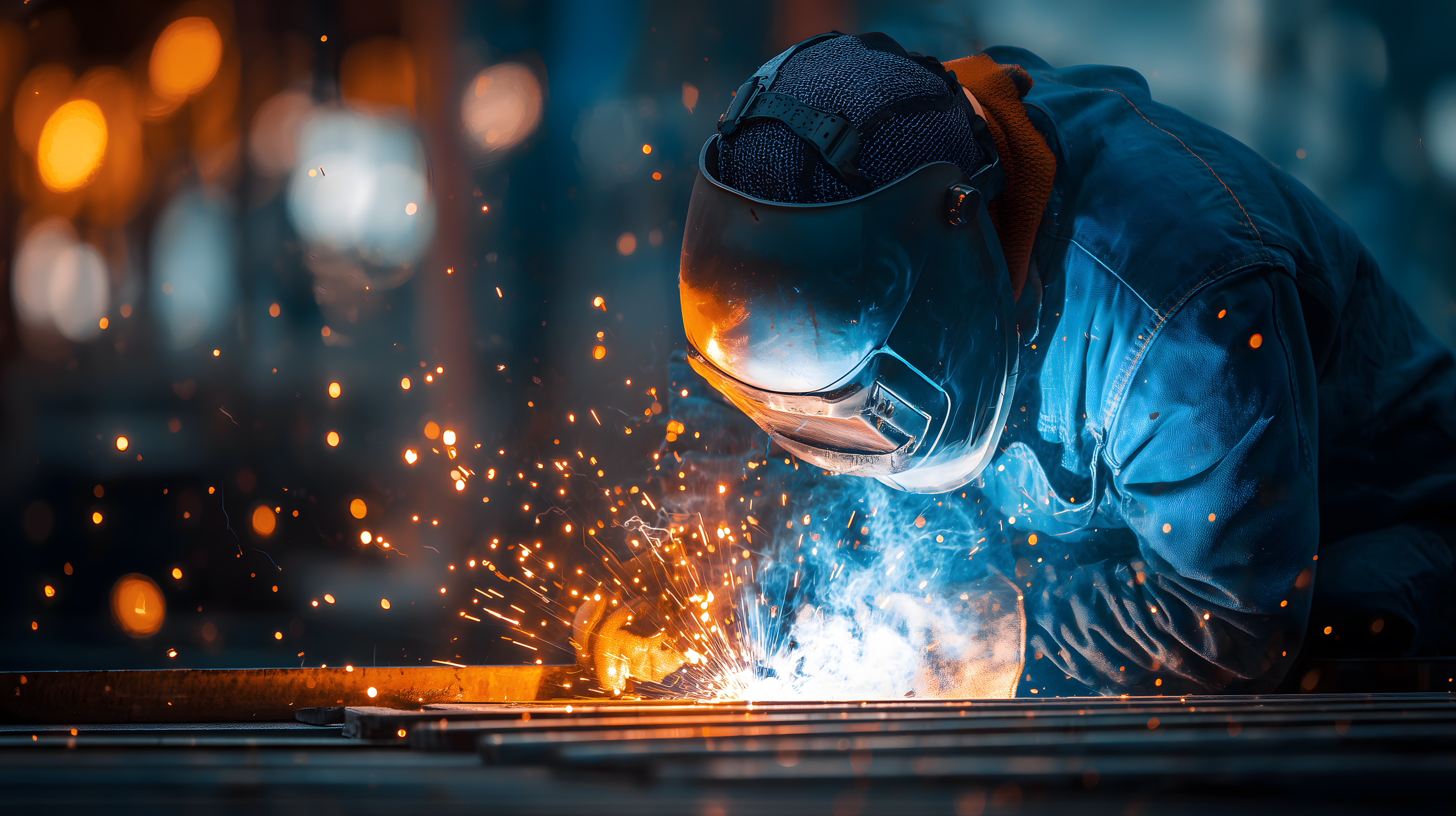 Das Bild zeigt einen Schweißer bei der Arbeit. Im Vordergrund ist der Schweißer in seiner Schutzausrüstung zu sehen, wie er konzentriert einen Schweißvorgang durchführt. Um ihn herum ist ein starker Funkenflug zu erkennen, der auf den intensiven Schweißprozess hinweist. Die Szene ist in eine dunkle, industrielle Umgebung eingebettet, die den Fokus auf das Geschehen am Schweißgerät lenkt. Dieses faszinierende Foto könnte für Industrieberichte, Werbekampagnen im Maschinenbau oder als Titelbild für Artikel über Handwerksberufe eingesetzt werden. Es ist ein kostenloses Stockfoto in hoher Auflösung unter einer Creative-Commons-Lizenz verfügbar.