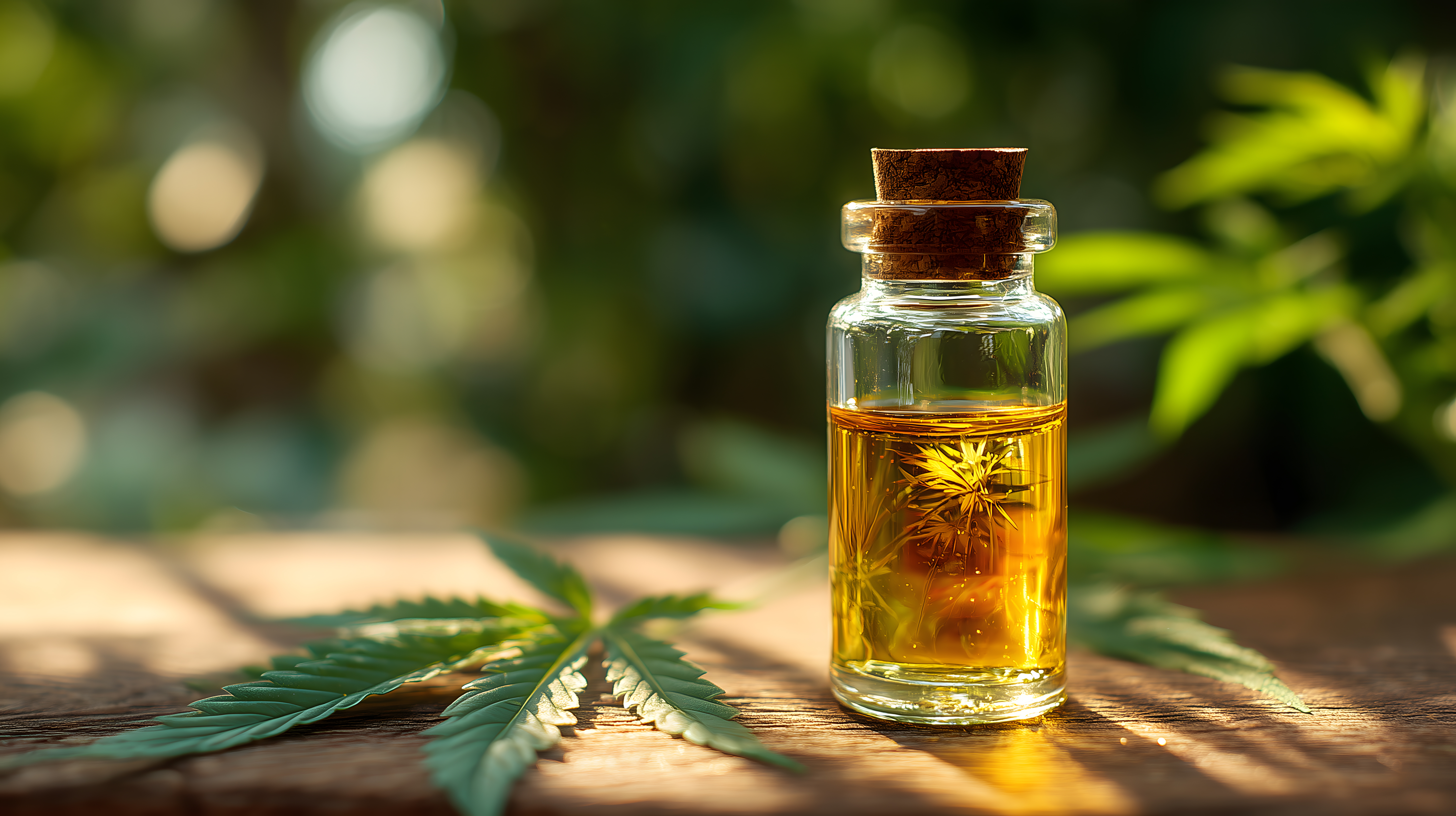 Dieses hochwertige Stockfoto zeigt eine Glasflasche mit gelbem Cannabisöl vor einem Hintergrund aus grünem Laub und einem Holztisch. Die Flasche steht im warmen Sonnenlicht, was das intensive Gelb des Öls betont. Das Foto vermittelt eine natürliche, gesunde und entspannte Stimmung, die sich gut für Blogs, Newsletter oder Werbung rund um Alternativmedizin, Wellness und Lifestyle eignet. Dieses kostenlose Stockfoto in hoher Auflösung steht unter der Creative-Commons-Lizenz zur Verfügung.