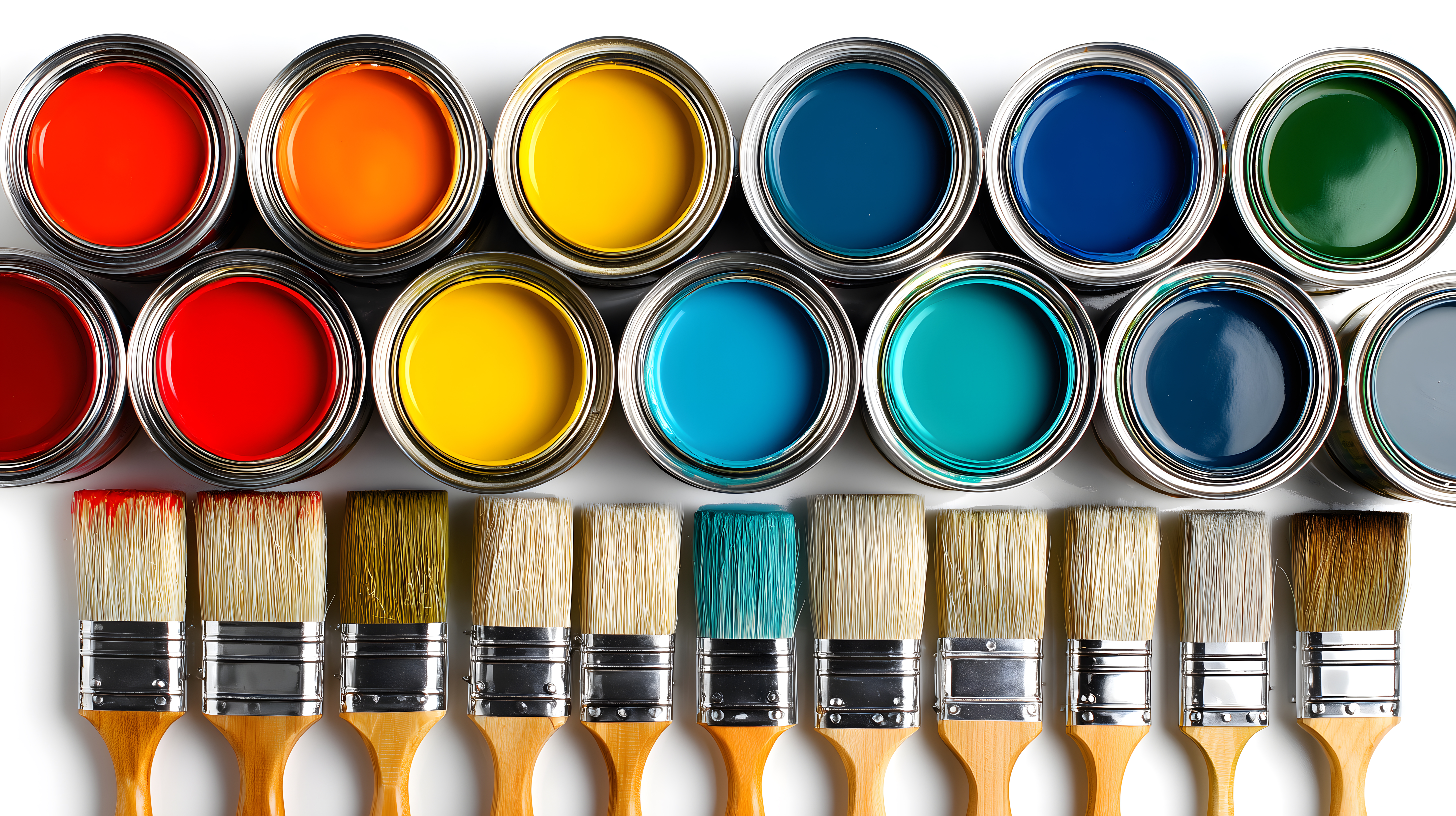 Das Bild zeigt eine Reihe von verschiedenfarbigen Farbdosen und Malerpinseln, die auf einem weißen Hintergrund angeordnet sind. Die Farbpalette reicht von leuchtendem Rot und Orange über Gelb und Blau bis hin zu Grün und Dunkelblau. Die Pinseln sind sorgfältig nebeneinander platziert, um die Vielfalt an Farbtönen und Werkzeugen zu betonen. Dieses Stockfoto eignet sich hervorragend für die Verwendung in Blogbeiträgen, Newslettern, Social-Media-Posts oder Werbematerialien rund um das Thema Kreativität, Malerei, Kunsthandwerk und Gestaltung. Es ist in hoher Auflösung verfügbar und unter der Creative-Commons-Lizenz kostenfrei nutzbar.