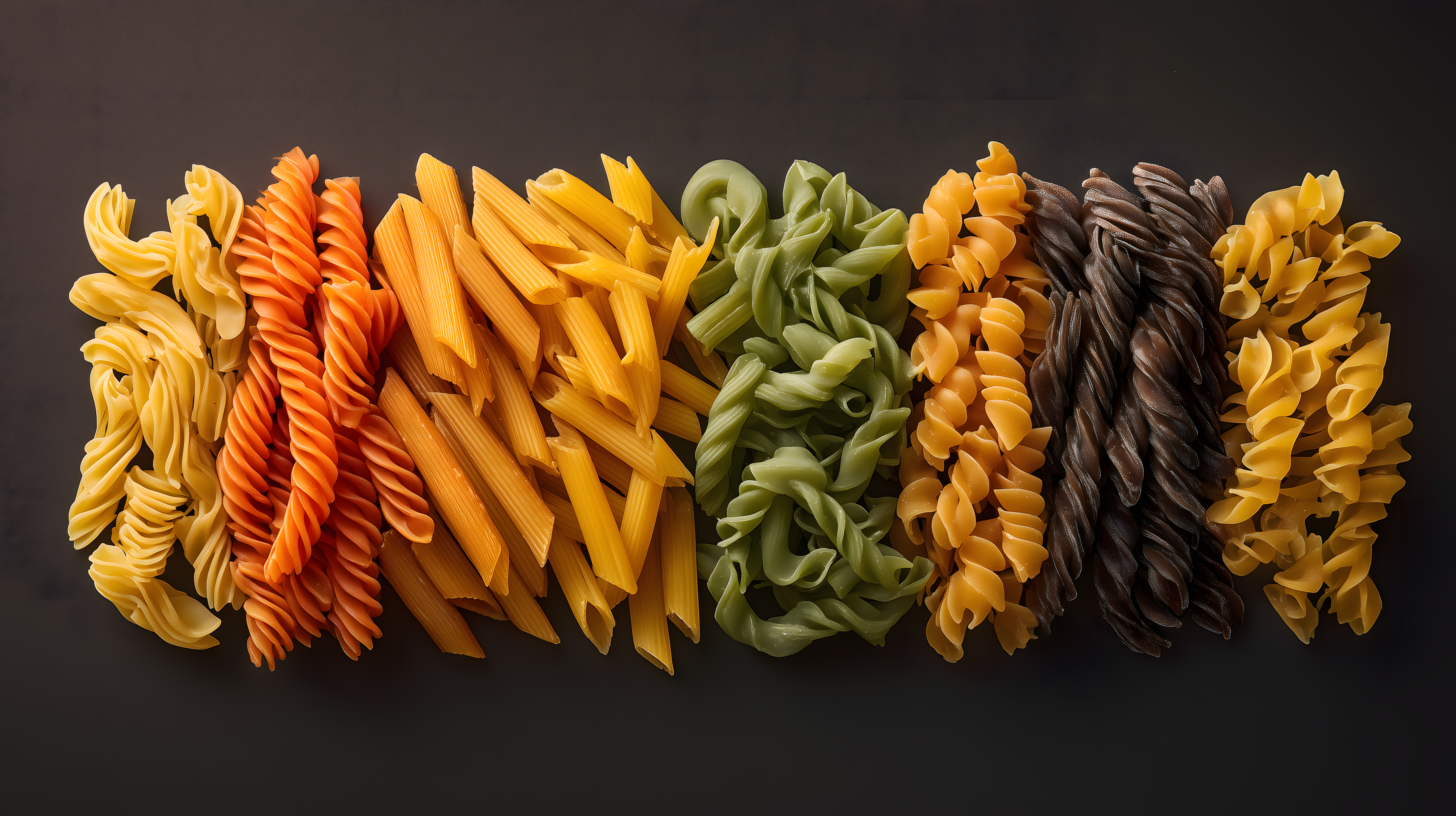 Dieses farbenfrohe Bild zeigt verschiedene Nudelsorten, die in einer Reihe angeordnet sind. Die Nudeln reichen von orange-gelben Fusilli über grüne Penne bis hin zu dunklen Vollkornnudeln. Das stimmungsvolle Arrangement in den Regenbogenfarben auf dunklem Hintergrund schafft eine moderne, ästhetische Optik. Dieses Foto eignet sich hervorragend als kostenloses Stockfoto für Beiträge rund um Pasta, Kochen, gesunde Ernährung oder Kreativität. Mit der hohen Auflösung lässt es sich in verschiedensten Kontexten, wie Blogbeiträgen, Webseiten oder Social-Media-Kanälen, verwenden und steht unter einer Creative-Commons-Lizenz zur Verfügung.