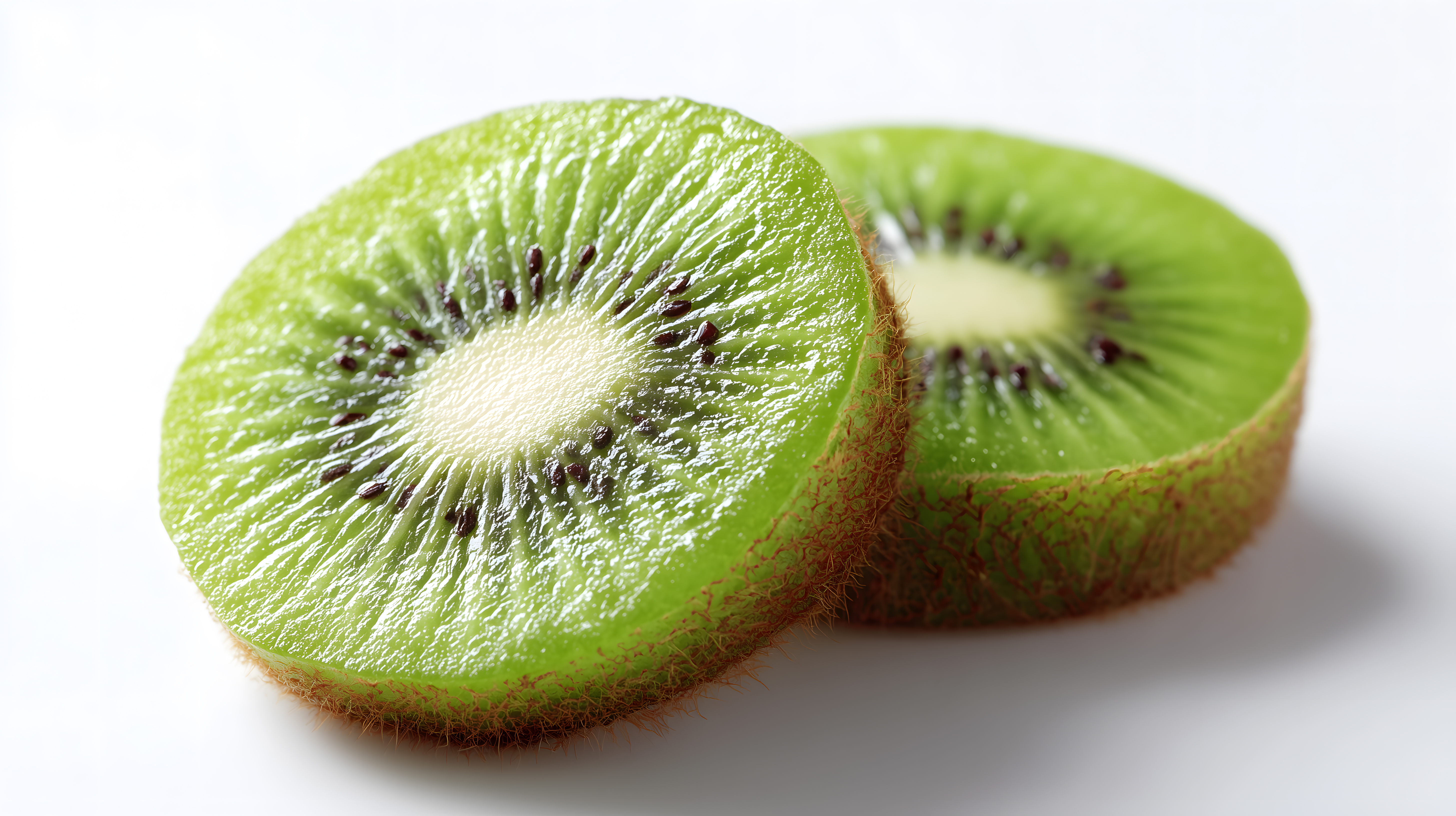Das Bild zeigt eine aufgeschnittene, saftige Kiwi auf einem weißen Hintergrund. Die Kiwi ist in zwei Hälften geschnitten, sodass ihre knackige, grüne Fruchtmasse mit den schwarzen Kernen gut zu sehen ist. Die Schärfe und Detailgenauigkeit des Fotos lassen die Textur und Frische der Kiwi deutlich hervortreten. Dieses hochwertige Stockfoto eignet sich hervorragend für den Einsatz in Blogbeiträgen, Werbekampagnen oder Social-Media-Postings zu Themen wie gesunde Ernährung, Vitamine, Lebensmittel oder Obst. Das Bild ist in hoher Auflösung und unter einer Creative-Commons-Lizenz kostenfrei verwendbar.