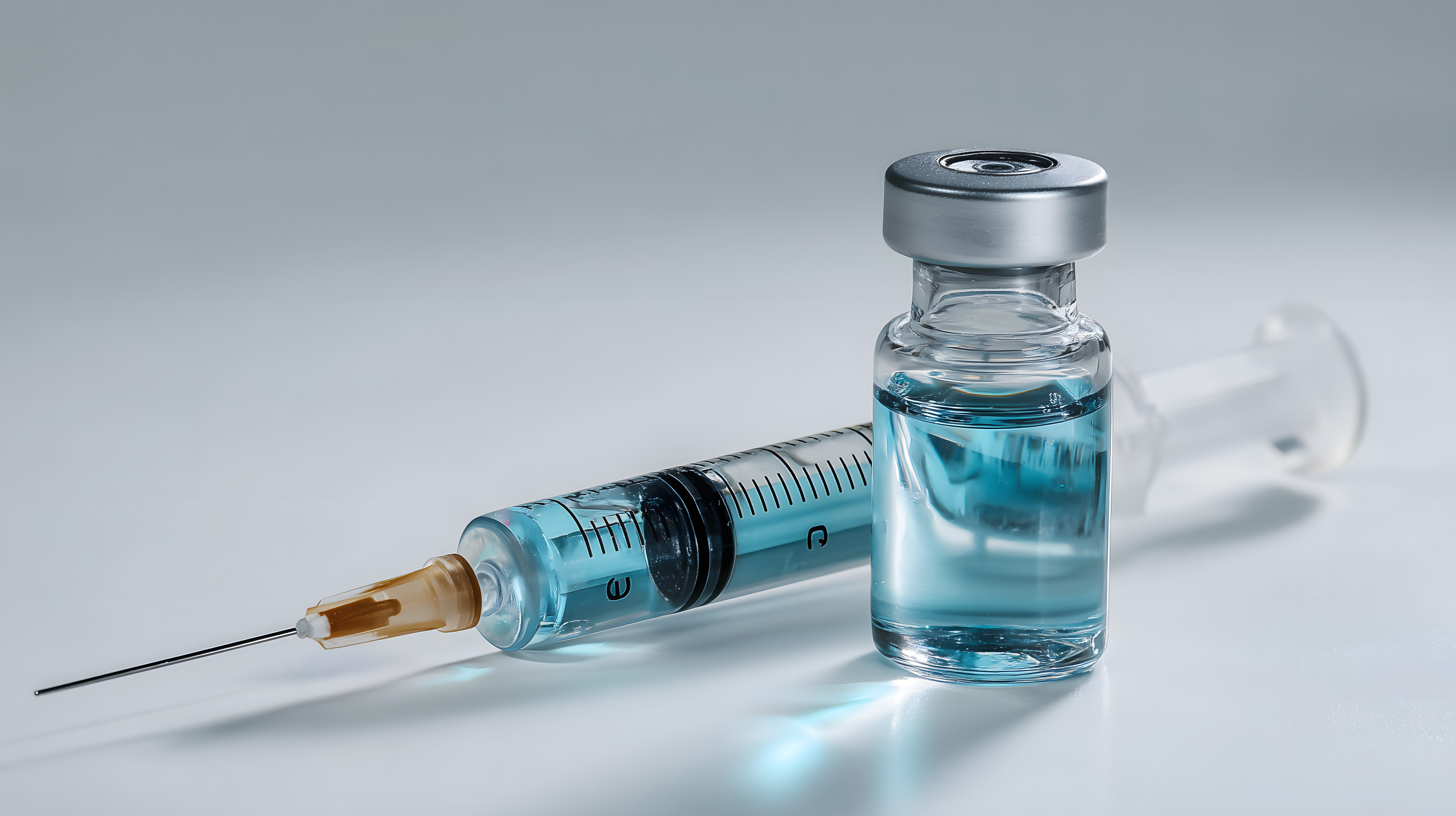 Das Bild zeigt ein medizinisches Injektionsset bestehend aus einer durchsichtigen Glasflasche, die mit einer blauen Flüssigkeit gefüllt ist, sowie einer silbernen Spritze. Vor einem minimalistischen, weißen Hintergrund präsentiert sich das Set in klaren, sauberen Linien und Formen. Die Transparenz der Komponenten vermittelt einen Eindruck von Reinheit, Sicherheit und moderner medizinischer Technologie. Dieses Foto eignet sich ideal für den Einsatz in Artikeln, Blogbeiträgen oder Werbematerialien rund um Themen wie Impfungen, Prävention, Gesundheitsvorsorge und die Entwicklung neuer Heilmittel. Als hochwertiges, kostenloses Stockfoto in hoher Auflösung und unter einer Creative-Commons-Lizenz lässt es sich vielseitig und rechtssicher in verschiedensten Kontexten verwenden.