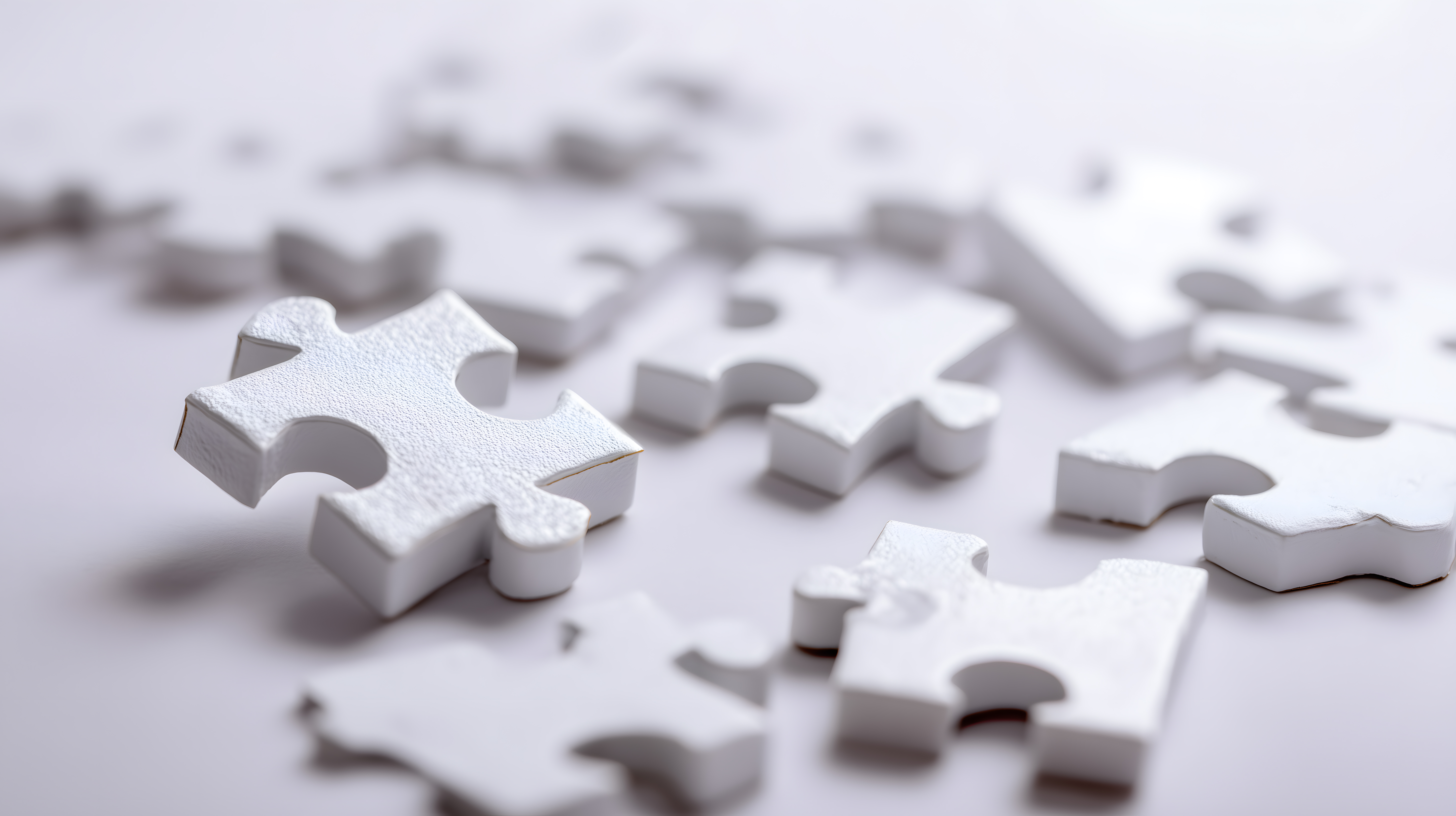 Das Bild zeigt mehrere weiße, geometrische Puzzleteile, die lose auf einer weißen Oberfläche verstreut liegen. Einige Teile fehlen, was den Eindruck von Unvollständigkeit und Lücken vermittelt. Dieses Konzept eignet sich hervorragend als Symbol für Strategie, Planung und Problemlösung, da es die Notwendigkeit veranschaulicht, fehlende Elemente zu finden und ein Gesamtbild zu schaffen. Das Foto bietet einen sauberen, minimalistischen Hintergrund, der die Aufmerksamkeit auf die Puzzleteile lenkt und eine ruhige, konzeptionelle Atmosphäre schafft. Dieses hochauflösende Stockfoto unter Creative-Commons-Lizenz kann vielseitig in Blogs, Newslettern, Social-Media-Beiträgen oder Werbematerialien eingesetzt werden, um Strategiekonzepte, Planung und Lösungsfindung bildlich darzustellen.