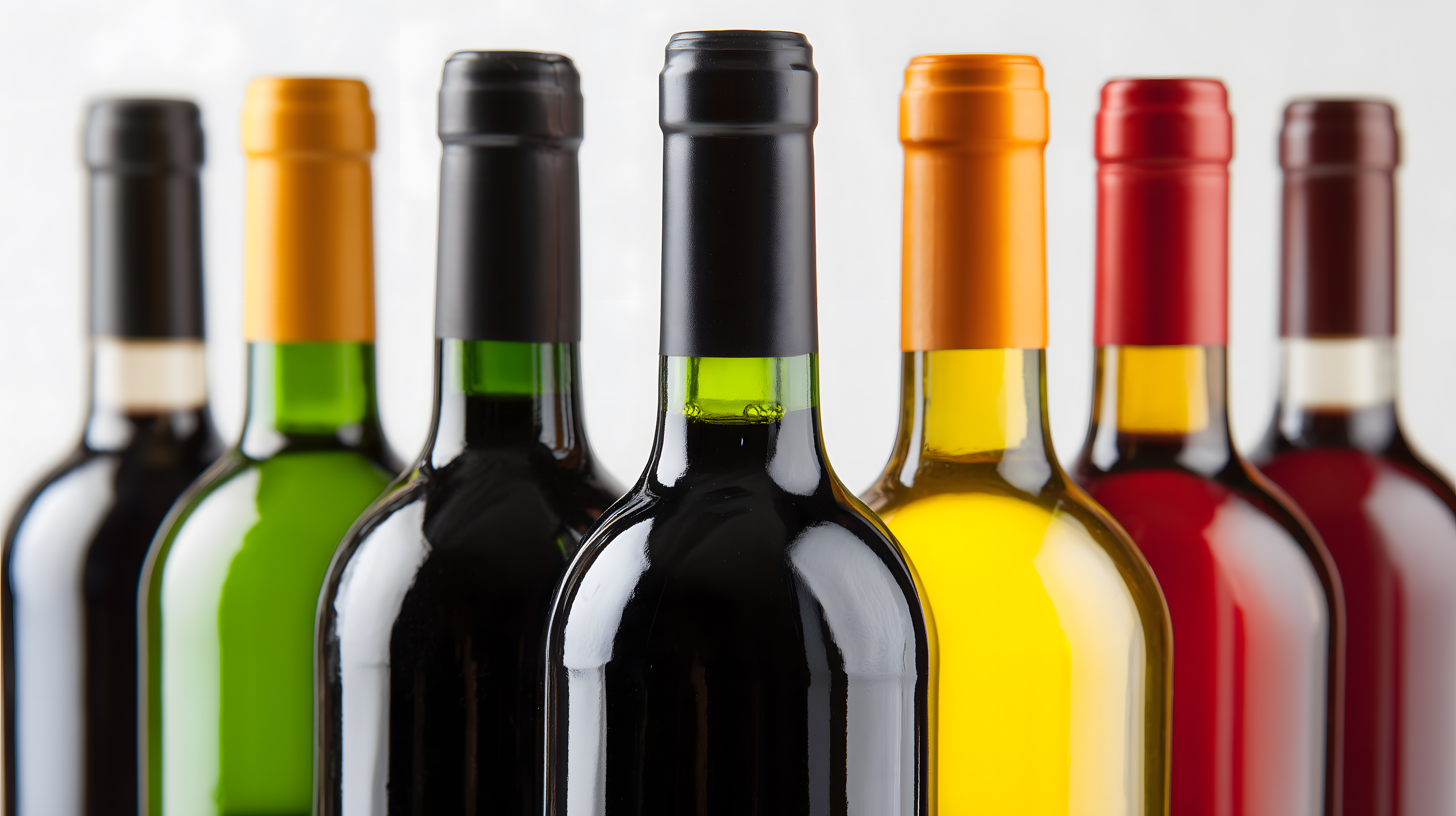 Dieses Foto zeigt eine Auswahl an Weinflaschen in verschiedenen Farben - Rot, Gelb, Orange und Grün - auf einem weißen Hintergrund. Die Flaschen sind sorgfältig angeordnet, um eine attraktive und einladende Präsentation zu schaffen. Das Bild ist ideal für den Einsatz in Blogbeiträgen, Werbekampagnen oder sozialen Medien, wenn es um Themen wie Wein, Getränke, Genuss oder Lifestyle geht. Als kostenloses Stockfoto in hoher Auflösung und mit Creative-Commons-Lizenz ist es vielseitig verwendbar.