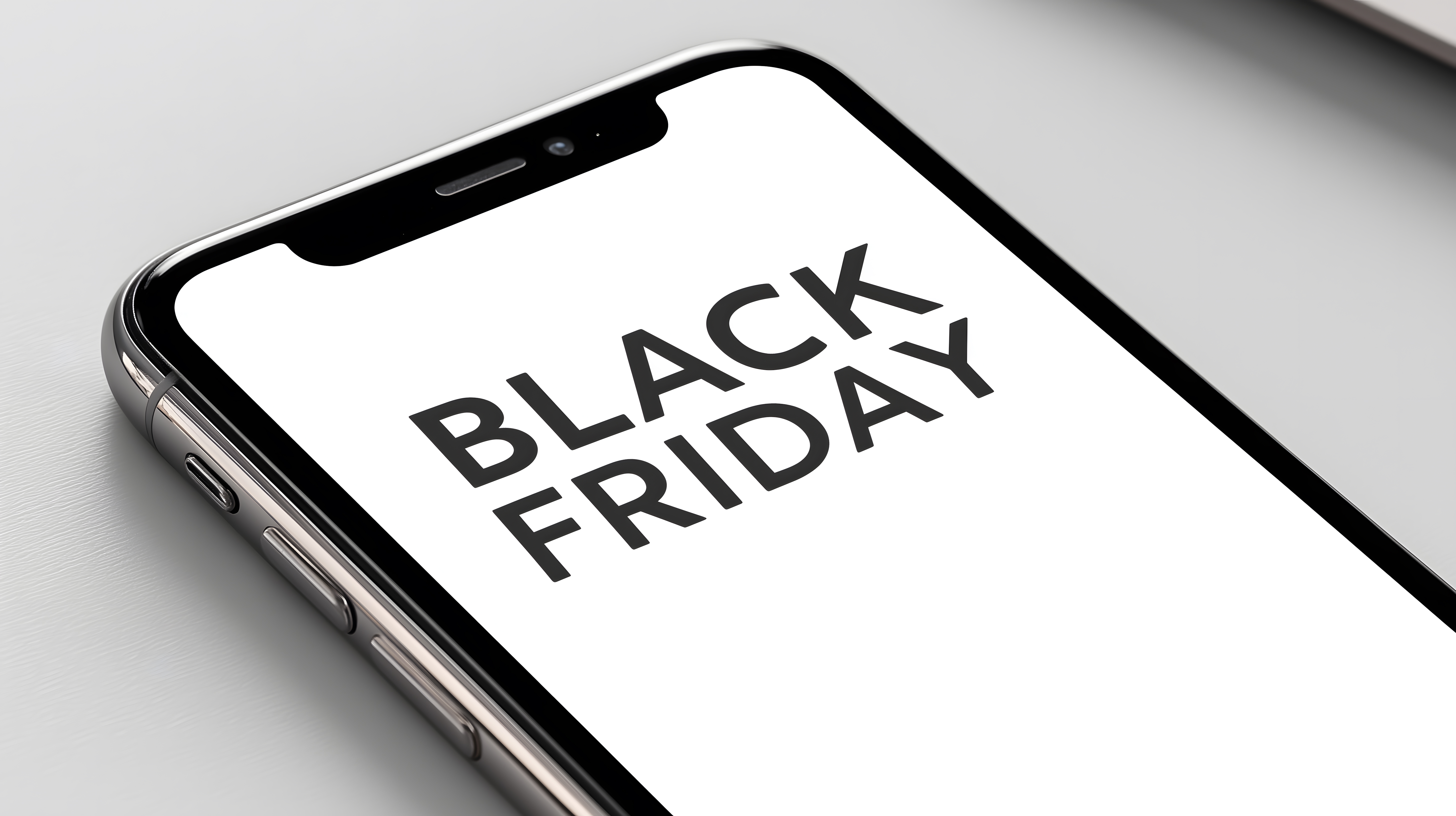 Das Bild zeigt ein Smartphone mit einem weißen Displayhintergrund, auf dem der Text 'BLACK FRIDAY' in schwarzen Buchstaben deutlich zu erkennen ist. Dieser Aufdruck weist auf den jährlich stattfindenden Sonderverkaufstag hin, an dem viele Händler und Onlineshops besonders attraktive Rabatte und Angebote anbieten. Das Foto eignet sich hervorragend als kostenloses Stockfoto für Blogbeiträge, Newsletter, Social-Media-Postings oder Werbematerialien rund um den Black Friday und ähnliche Verkaufsaktionen. Die hohe Bildauflösung und die lizenzfreie Creative-Commons-Nutzung ermöglichen eine flexible Verwendung in verschiedensten Kontexten.