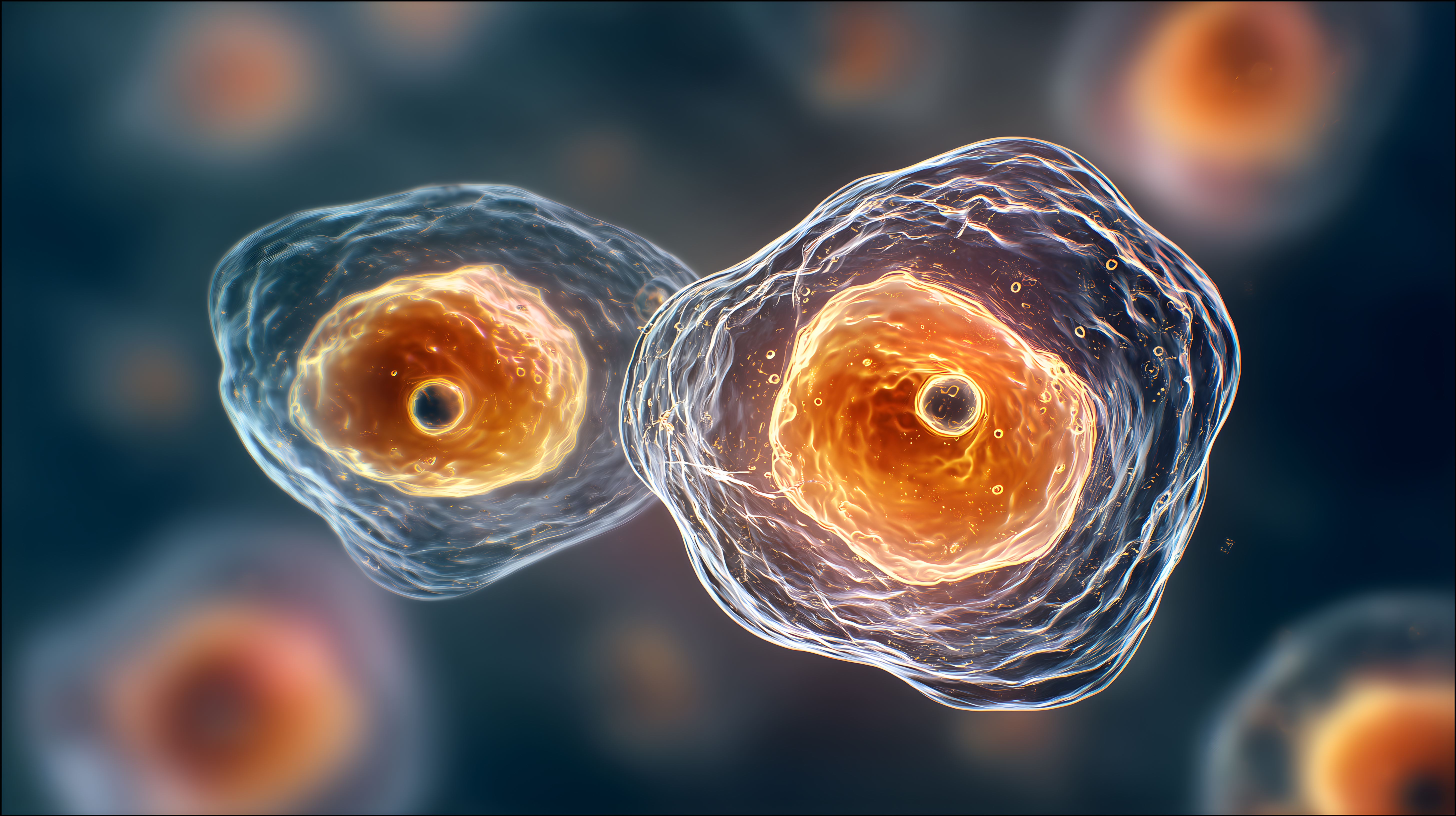 Dieses faszinierende Bild zeigt eine abstrakte Mikroskopaufnahme von Zellkernen unter extremer Vergrößerung. Die Zellkerne sind in kräftigen Rottönen dargestellt und von einer transluzenten, wellenförmigen Struktur umgeben, die an die Oberfläche von Blasen oder Seifenblasen erinnert. Das Bild vermittelt einen einzigartigen Einblick in die komplexe Welt der Zellbiologie und Mikroorganismen und eignet sich hervorragend als Hintergrundbild für Blogs, Newsletter oder Social-Media-Beiträge rund um Themen wie Wissenschaft, Forschung und Technologie. Dieses hochauflösende, kostenlose Stockfoto steht unter einer Creative-Commons-Lizenz zur Verfügung.