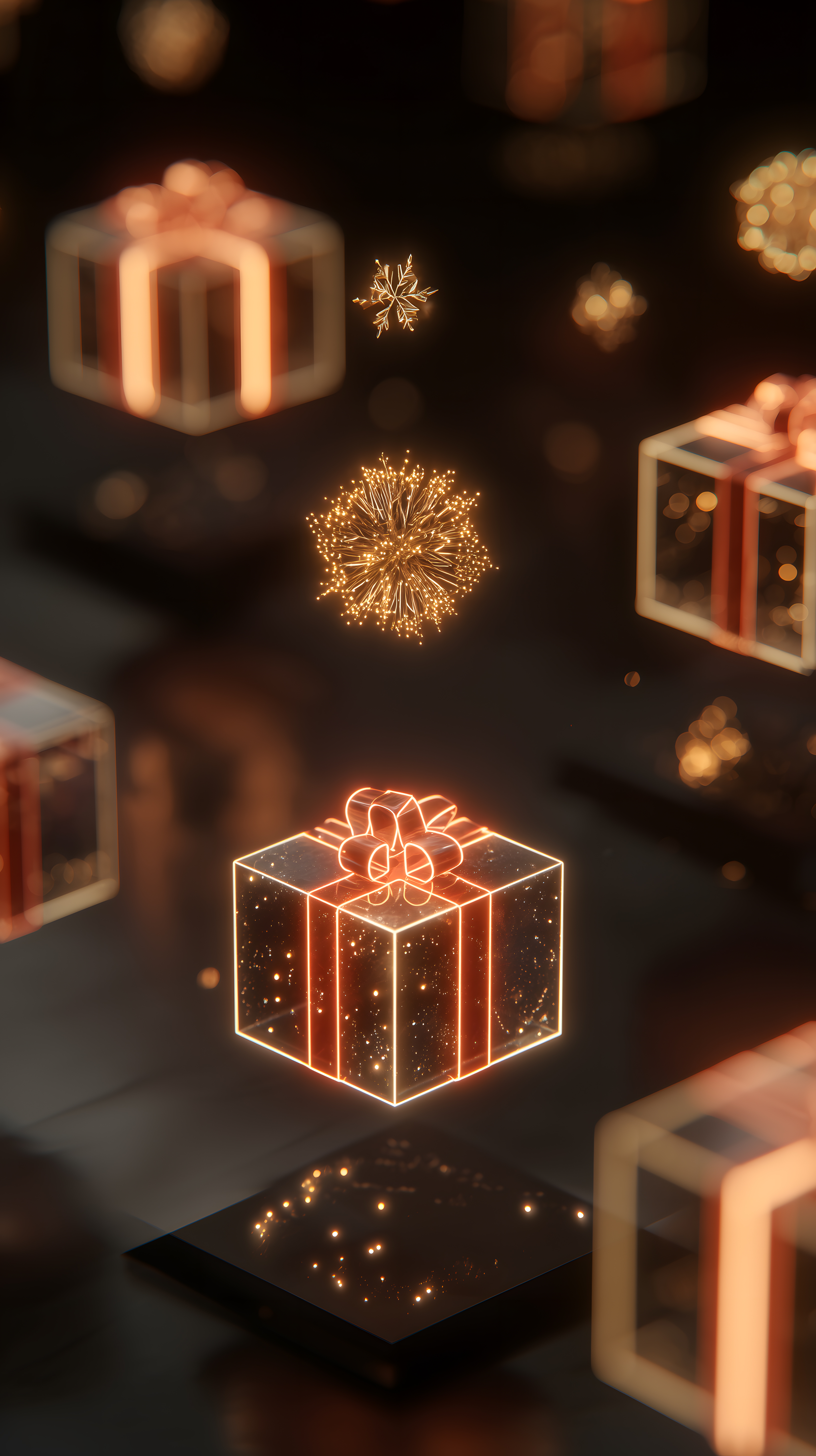 Dieses stimmungsvolle Bild zeigt festliche Weihnachtsgeschenke, die von leuchtenden Schneeflocken umgeben sind. Die Geschenkboxen strahlen in verschiedenen Formen und Farbtönen, während die funkelnden Schneeflocken eine zauberhafte Atmosphäre erschaffen. Die Szene ist vor einem dunklen Hintergrund gehalten, wodurch die Beleuchtung und das warme Glühen der Geschenke besonders hervorgehoben werden. Dieses kostenlose Stockfoto in hoher Auflösung unter Creative-Commons-Lizenz eignet sich perfekt für Weihnachtsdekorationen, Werbekampagnen, Blogbeiträge oder Grußkarten.