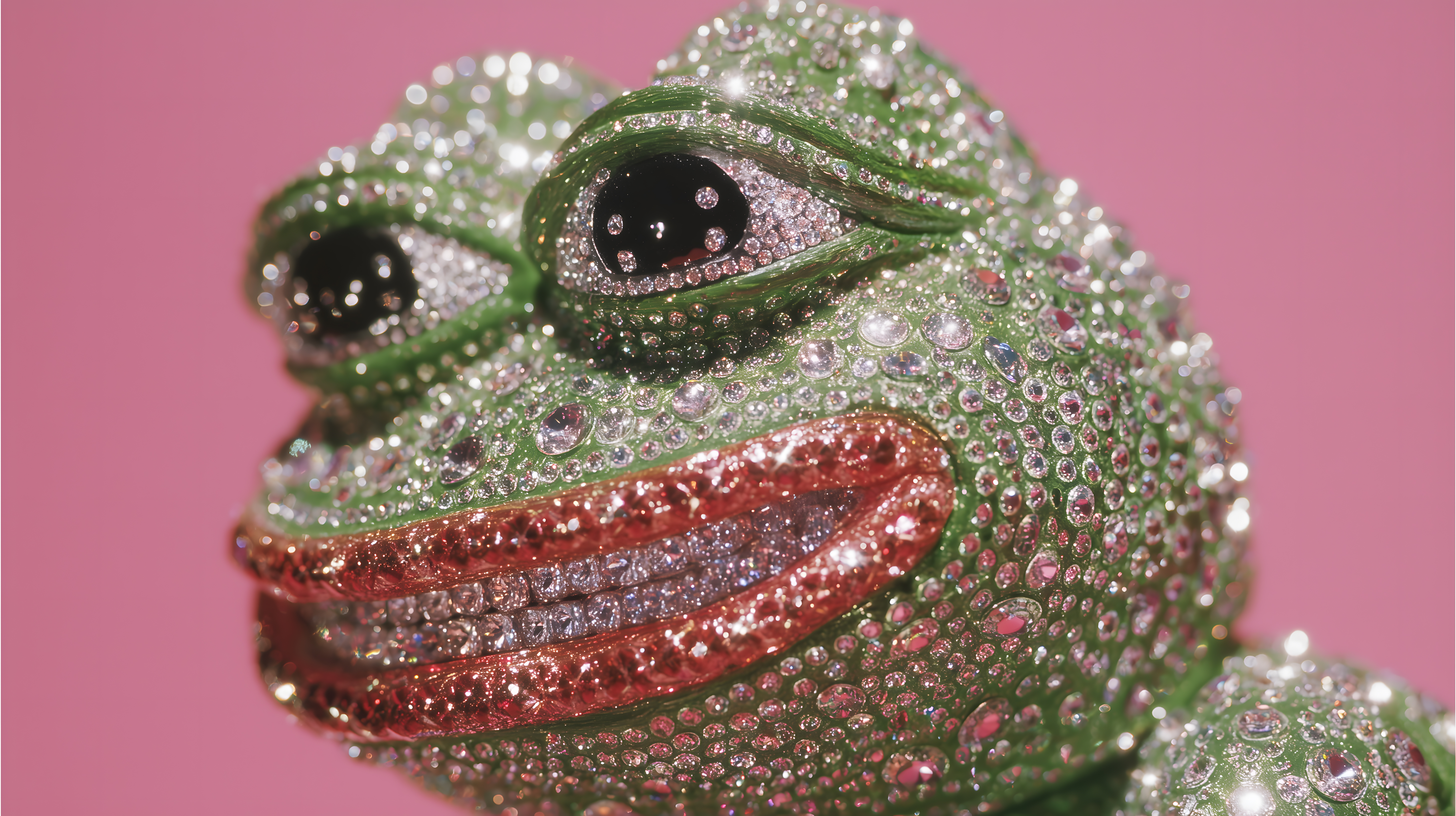 Glamouröser, kristallbesetzter Frosch auf rosafarbenem Hintergrund von Marco Verch unter Creative Commons 2.0