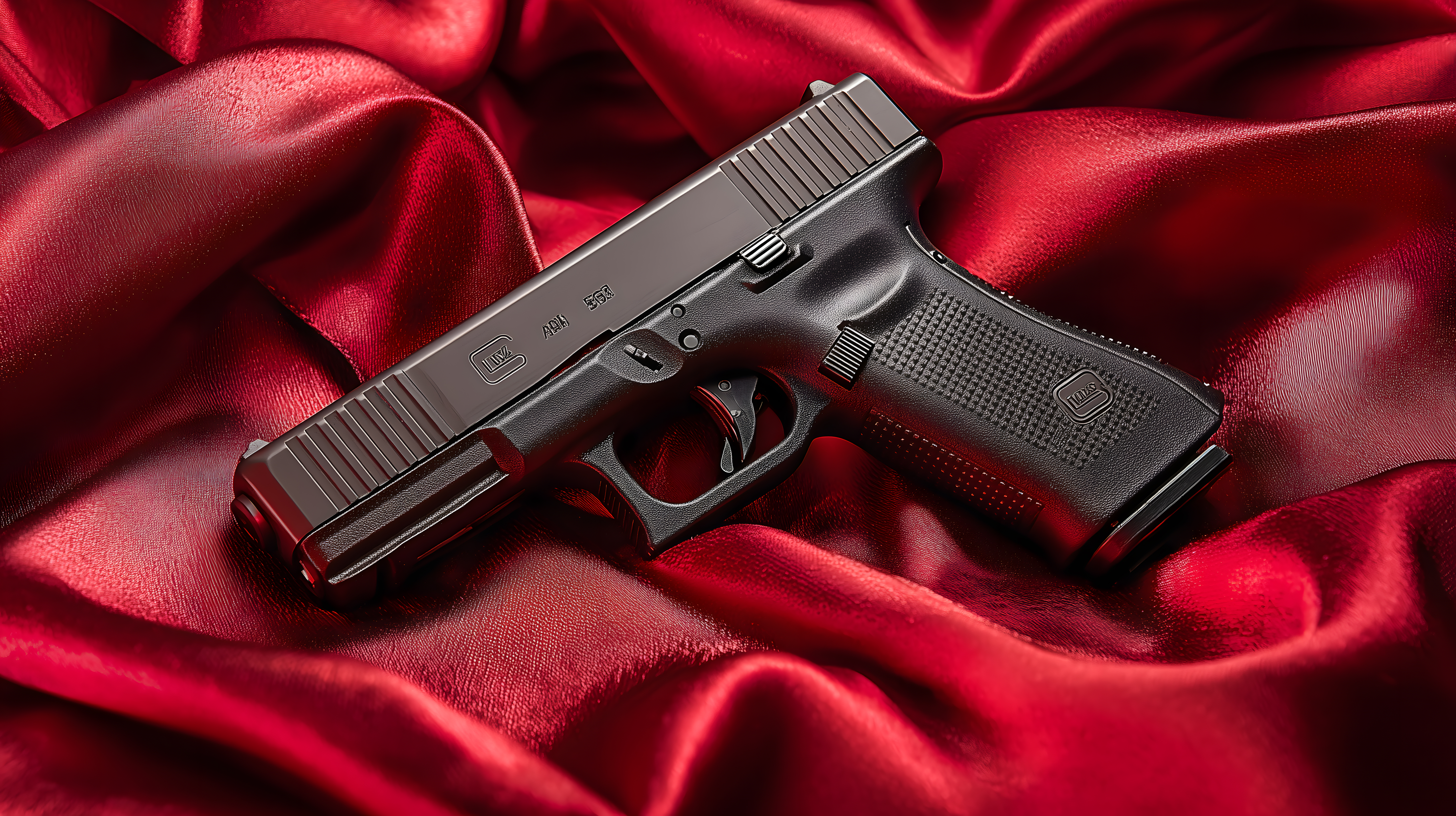 Dieses Bild zeigt eine moderne Pistole, die auf roter Seide liegt. Der starke Kontrast zwischen dem schwarzen Waffenmaterial und dem leuchtend roten Stoffhintergrund lässt die Waffe im Zentrum des Fotos stehen. Die Perspektive und Schärfentiefe verleihen dem Bild eine professionelle Ästhetik, die sich ideal für den Einsatz in Werbe- und Marketingmaterialien eignet - etwa für Blogbeiträge, Newsletter oder Social-Media-Posts zum Thema Sicherheit, Selbstverteidigung oder Industrie. Dieses hochauflösende, kostenlose Stockfoto unter Creative-Commons-Lizenz bietet viel Potenzial für kreative Gestaltung.