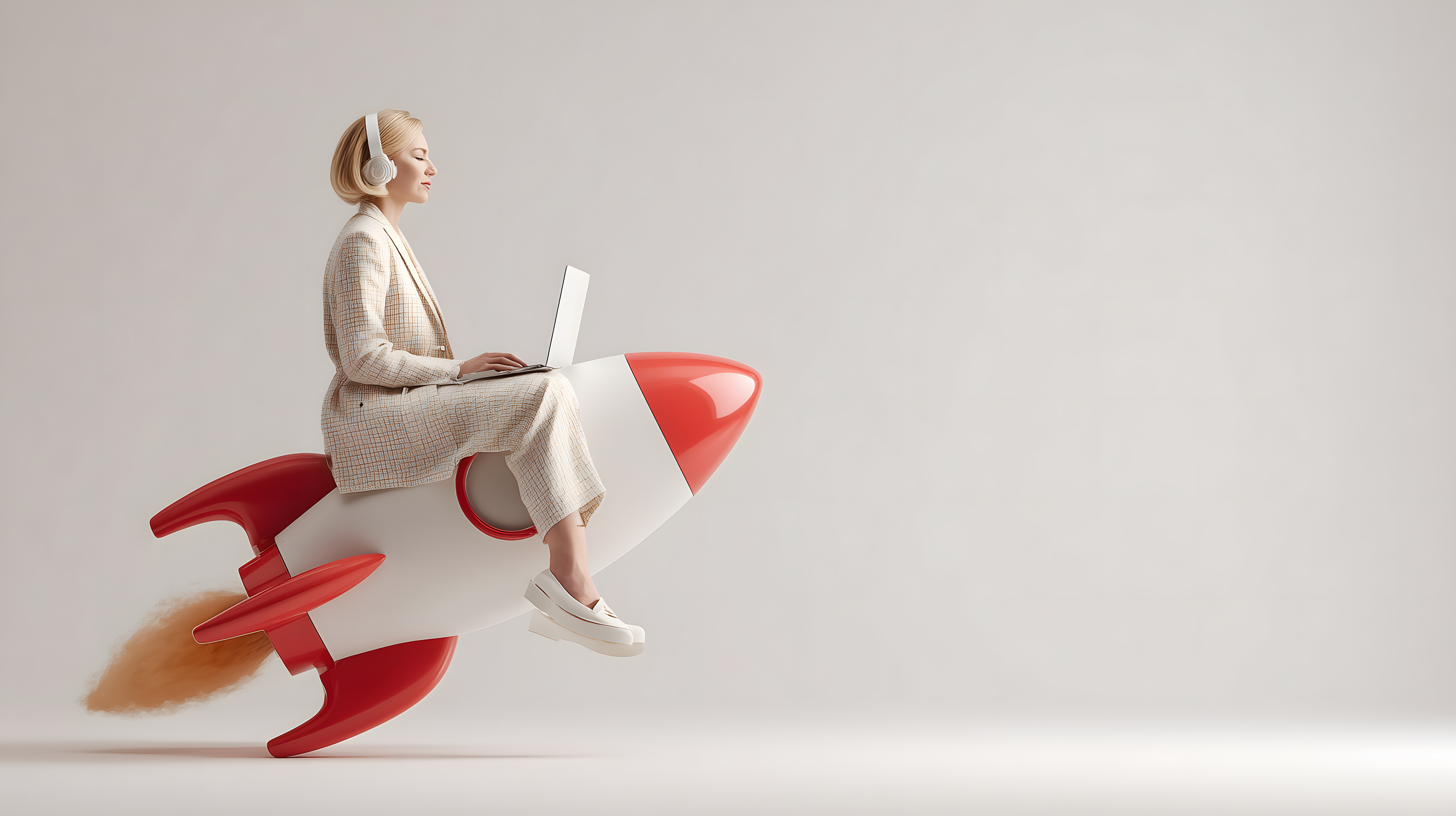 Das Bild zeigt eine moderne, selbstbewusste Geschäftsfrau, die mit einem Laptop auf einer roten Rakete sitzt. Sie ist elegant gekleidet und scheint voller Tatendrang und Entschlossenheit. Die Szene symbolisiert Erfolg, Innovation und den Aufbruch in eine neue, digitale Ära. Dieses Stockfoto eignet sich hervorragend für Unternehmenswebsites, Blogbeiträge zu den Themen Startup, Digitalisierung oder Selbstständigkeit sowie für Social-Media-Kampagnen. Das hochauflösende Bild ist unter einer Creative-Commons-Lizenz verfügbar und kann für verschiedene kommerzielle und redaktionelle Zwecke kostenlos genutzt werden.
