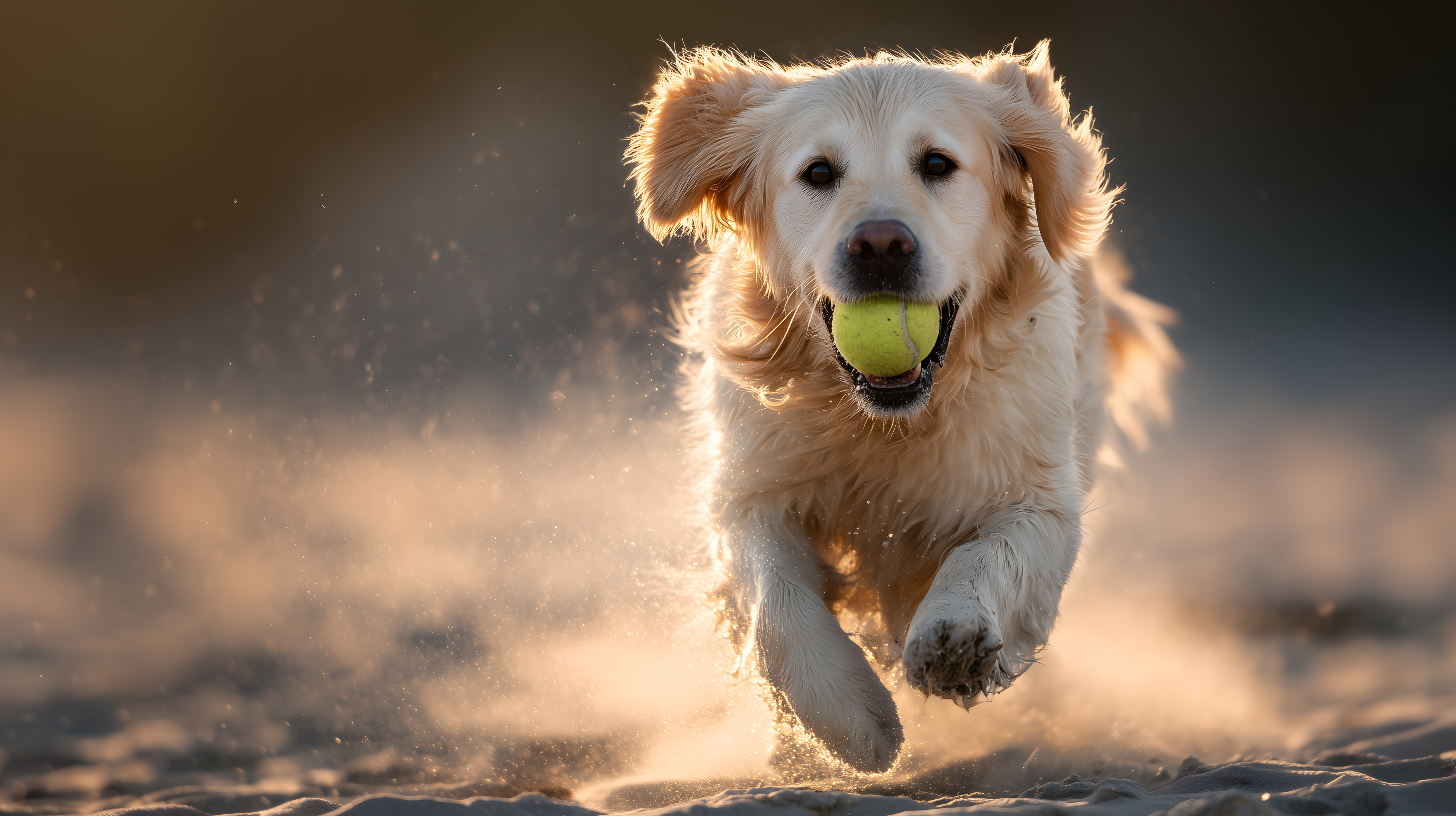 Das Bild zeigt einen strahlenden Golden Retriever, der in voller Fahrt einem grünen Tennisball hinterherjagt. Vor einem Hintergrund aus goldenem Sonnenlicht und feinem Sandstrand zeigt der Hund absolute Lebensfreude und Spieltrieb. Mit seiner flauschigen, leuchtend goldenen Fellpracht und dem offenen, fröhlichen Gesichtsausdruck strahlt er eine unbeschwerte Energie aus, die den Betrachter direkt mitreißt. Dieses dynamische Foto eignet sich hervorragend als kostenloses Stockfoto für kreative Projekte in hoher Auflösung, wie beispielsweise Blogbeiträge, Social-Media-Posts oder Werbekampagnen rund um das Thema Haustiere, Outdoor-Aktivitäten oder glückliche Momente in der Natur. Es steht unter der Creative-Commons-Lizenz zur freien Verwendung zur Verfügung.