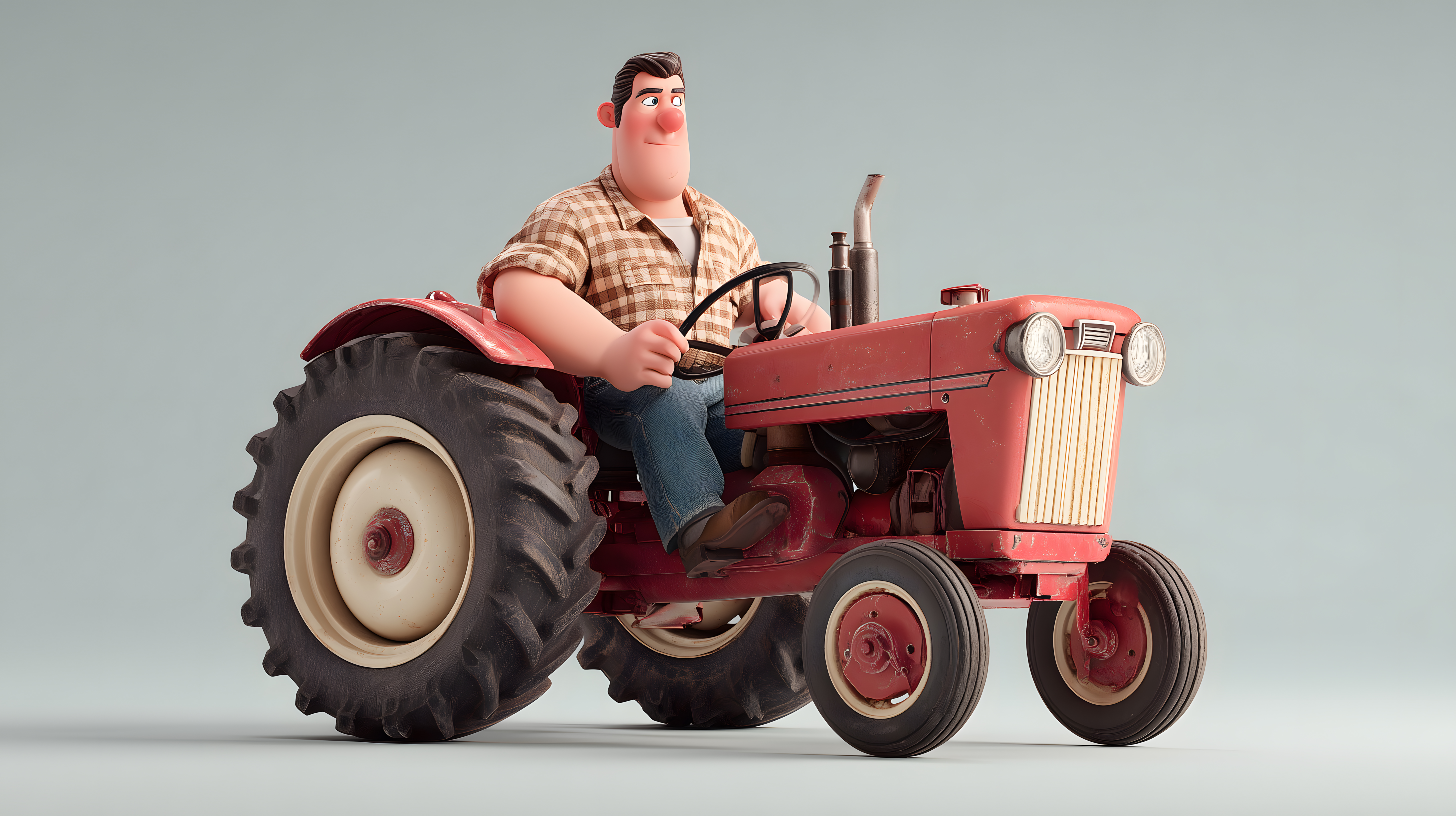 Das Bild zeigt einen fröhlichen Landwirt, der einen roten Traktor fährt. Er trägt ein kariertes Hemd und eine Jeans und lächelt freundlich in die Kamera. Der Traktor ist ein klassisches, rot lackiertes Modell mit großen Reifen. Das Bild hat einen cartoonartigen, nostalgischen Stil und könnte gut für Agrarblogs, landwirtschaftliche Publikationen oder Werbematerialien rund um das Landleben verwendet werden. Als kostenloses Stockfoto in hoher Auflösung und unter Creative-Commons-Lizenz ist es für vielfältige Projekte geeignet.