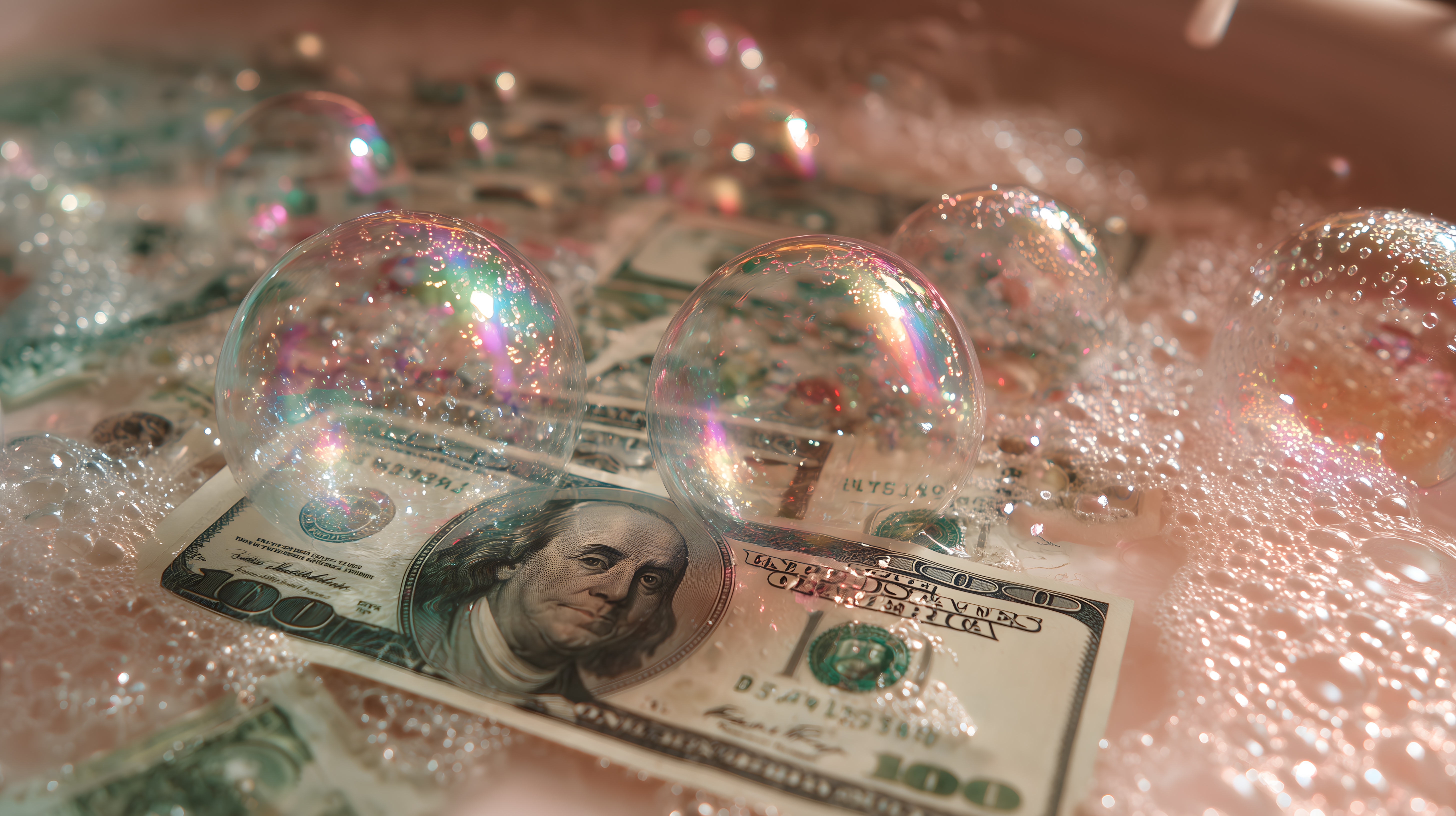 Schillernde Seifenblasen umgeben Geldscheine von Marco Verch unter Creative Commons 2.0
