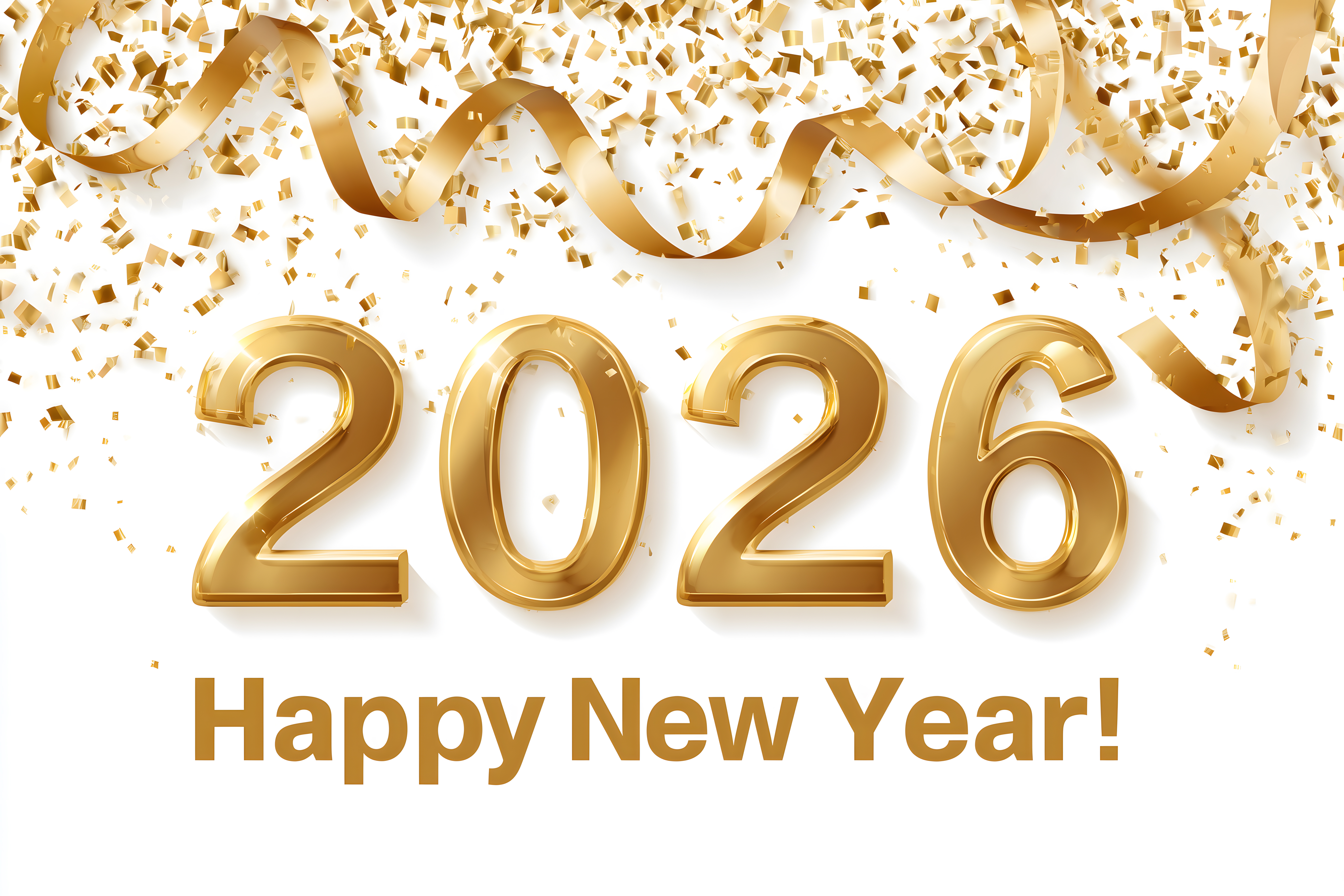 Dieses Foto zeigt eine festliche Neujahrskulisse mit glänzenden goldenen Ziffern '2026', umgeben von bunten Konfetti-Partikeln und schwungvollen Girlanden. Das Bild strahlt Glamour, Feierlichkeit und Optimismus für das neue Jahr aus. Es eignet sich hervorragend als Hintergrund für Neujahrskarten, Werbemittel, Präsentationen oder als Wallpaper. Das hochauflösende, kostenloses Stockfoto steht unter einer Creative-Commons-Lizenz zur Verfügung.