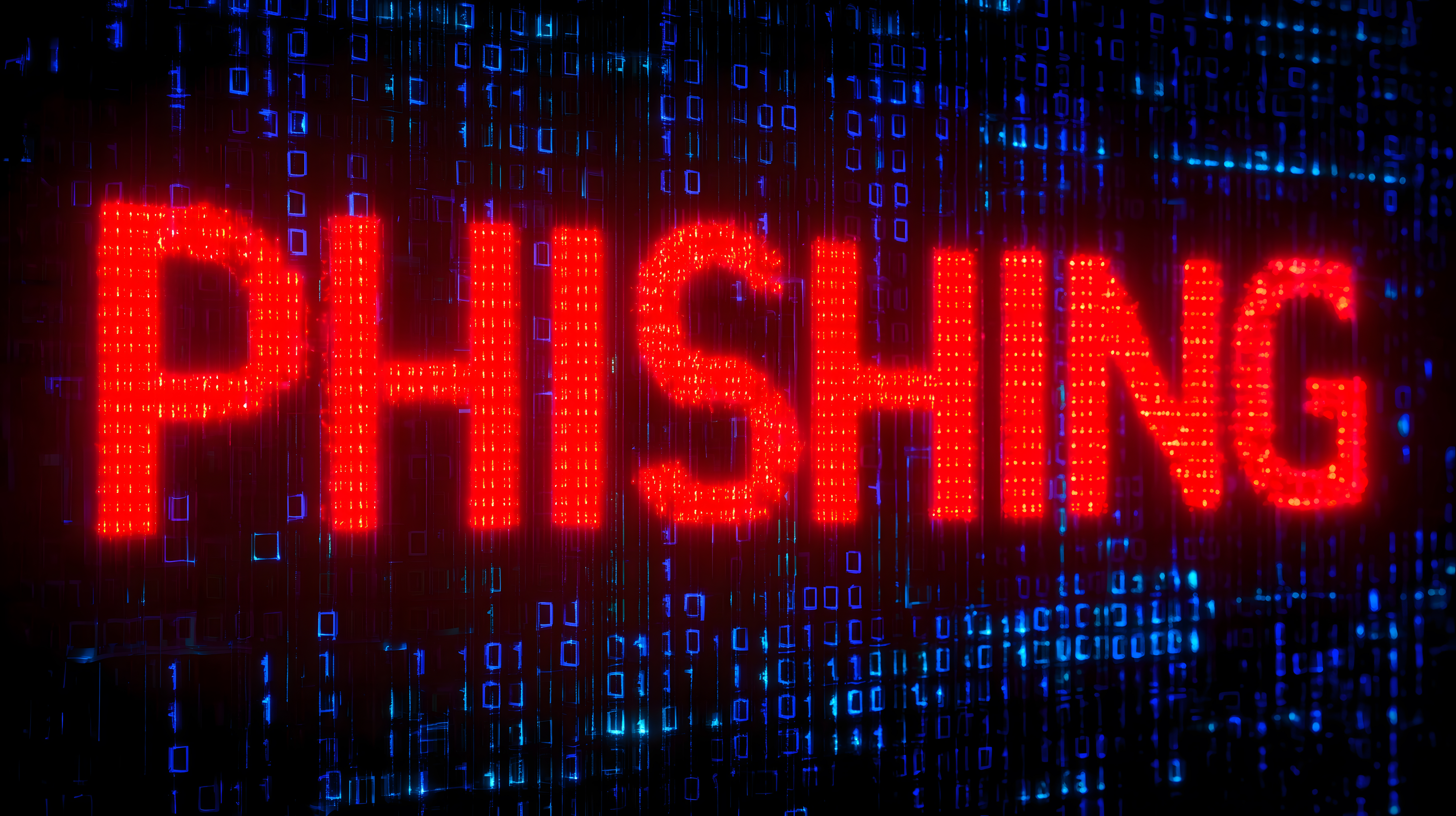 Dieses eindrucksvolle Bild zeigt eine digitale Warnung vor Phishing-Attacken. Der rote, leuchtende Schriftzug 'PHISHING' hebt sich deutlich von dem Hintergrund aus bunten Binärcodes ab und vermittelt eine starke Bedrohungssituation. Die technologisch anmutende Optik sowie die kräftigen Farben machen dieses Foto zu einem aussagekräftigen Konzeptbild, das sich hervorragend für Artikel, Blogbeiträge oder Social-Media-Kampagnen zum Thema Internetsicherheit und Cyberkriminalität eignet. Als hochwertiges, kostenloses Stockfoto unter der Creative-Commons-Lizenz ist es frei verwendbar.