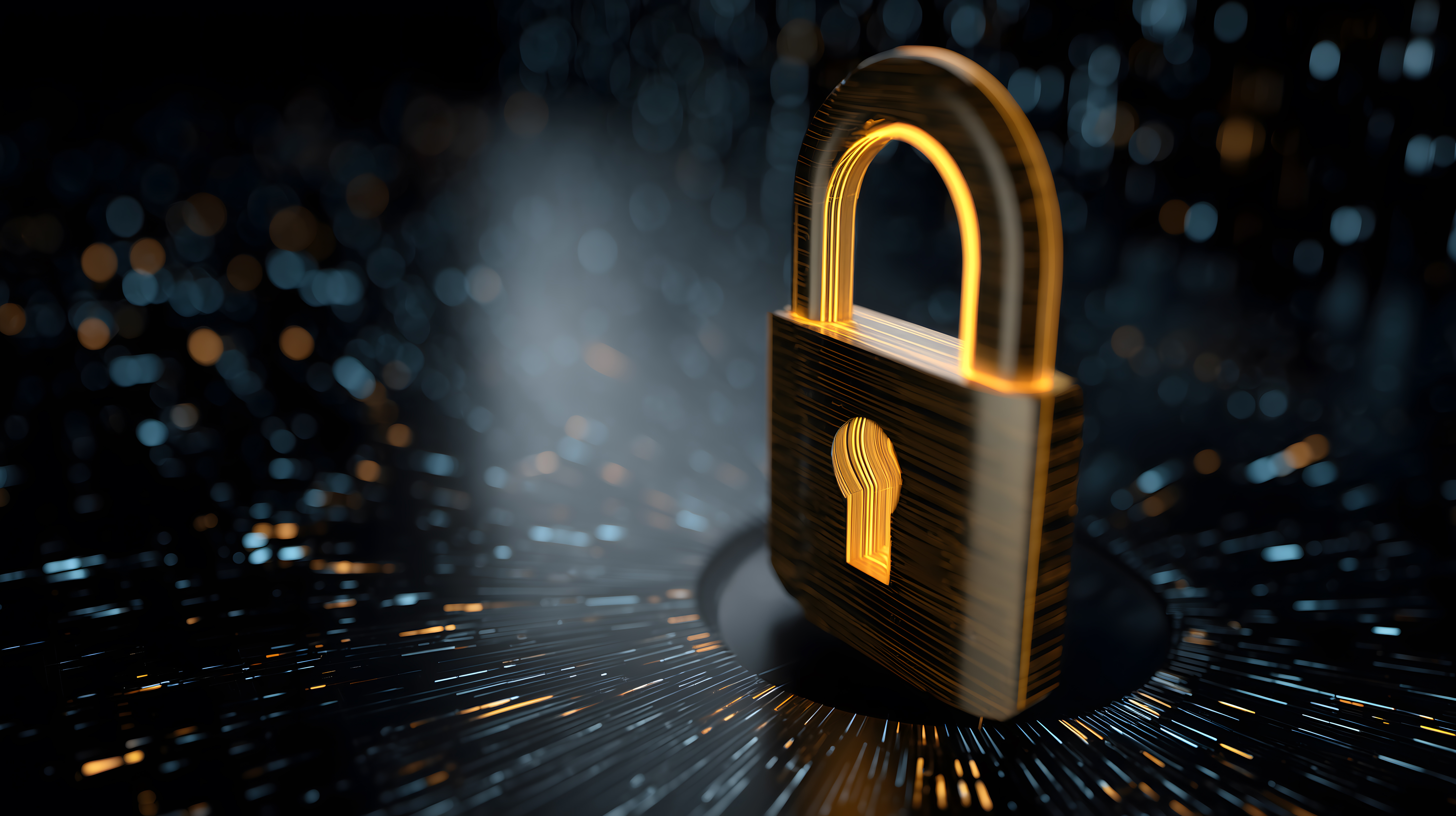 Dieses Bild zeigt ein digitales Sicherheitsschloss vor einem dunklen Hintergrund mit leuchtenden Punkten und Streifen. Das goldfarbene Schloss steht symbolisch für Cybersicherheit, Datenschutz und Verschlüsselung. Die abstrakte und technische Ästhetik macht das Foto ideal für den Einsatz in Blogbeiträgen, Newslettern, Social-Media-Posts oder Werbekampagnen rund um Themen wie IT-Sicherheit, Datenschutz und Digitaltechnik. Als kostenloses Stockfoto in hoher Auflösung und unter Creative-Commons-Lizenz eignet sich dieses Bild hervorragend für verschiedene Projekte.