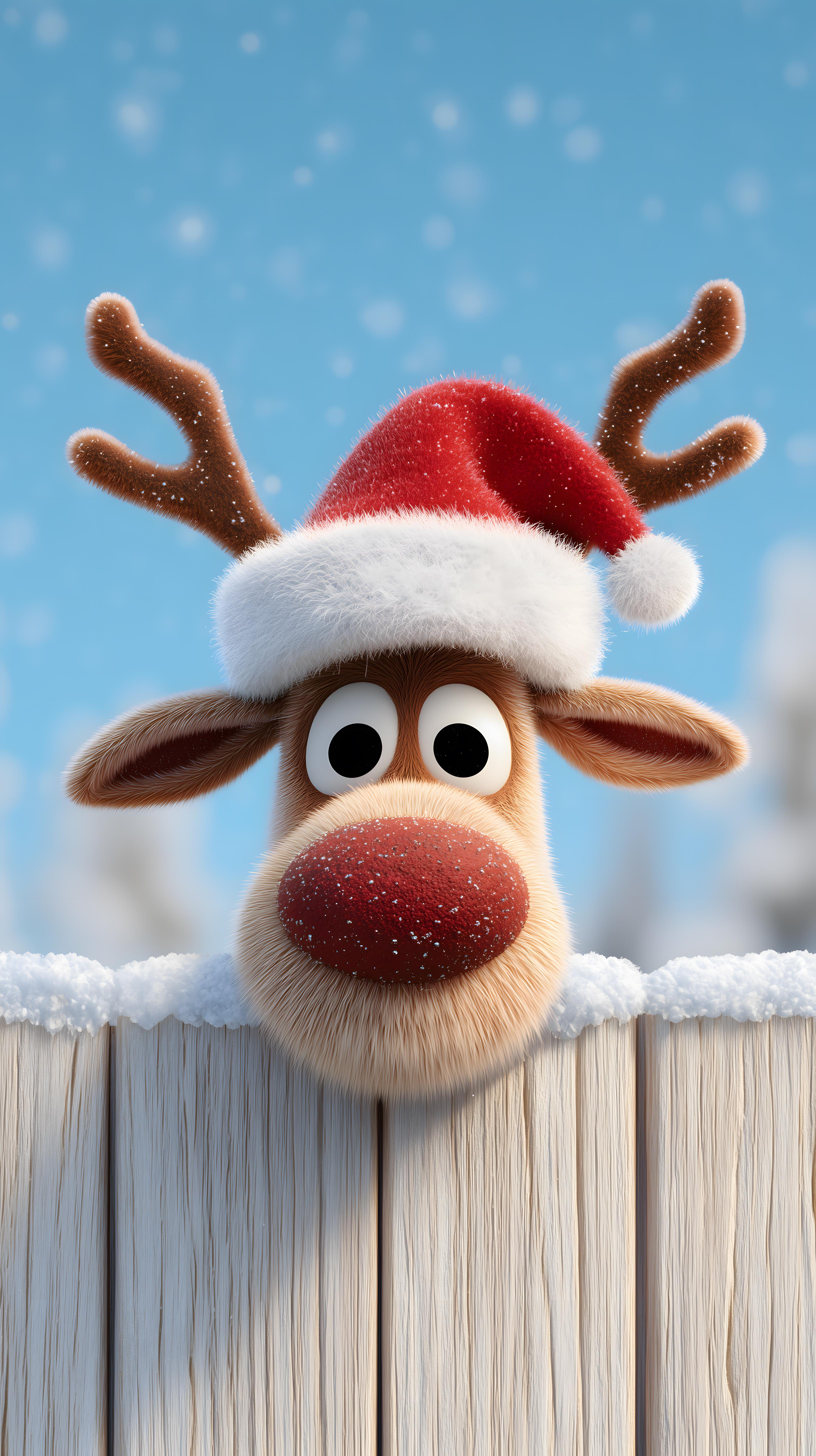 Dieses charmante Cartoon-Rentier mit Weihnachtsmann-Mütze und runder Nase lugt fröhlich über einen verschneiten Holzzaun. Das witzige Bild eignet sich perfekt für Weihnachts- und Wintermotive in Blogbeiträgen, Newslettern, Social-Media-Posts sowie Werbe- und Dekorationszwecken. Als hochauflösendes, kostenloses Stockfoto unter Creative-Commons-Lizenz lässt es sich flexibel in verschiedensten Projekten einsetzen.