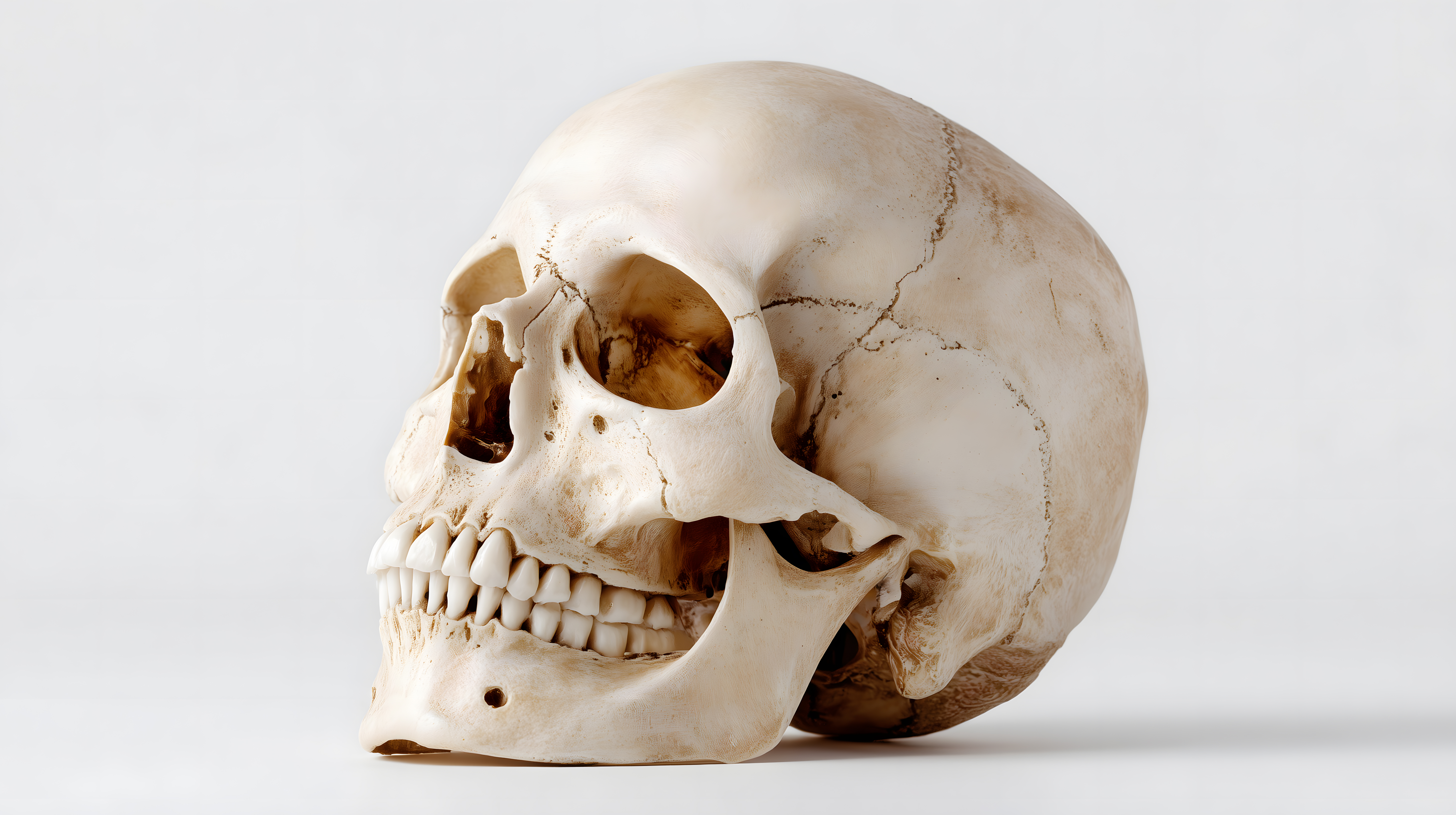 Dieses Foto zeigt einen detaillierten, seitlich abgebildeten menschlichen Schädel auf weißem Hintergrund. Der Schädel ist vollständig und lässt alle anatomischen Strukturen wie Zähne, Augenhöhlen und Nasenhöhle deutlich erkennen. Die Aufnahme wurde professionell in einem Studio angefertigt und eignet sich hervorragend als kostenloses Stockfoto für medizinische, biologische oder wissenschaftliche Themen. Das hochauflösende Bild steht unter einer Creative-Commons-Lizenz zur freien Verwendung zur Verfügung.