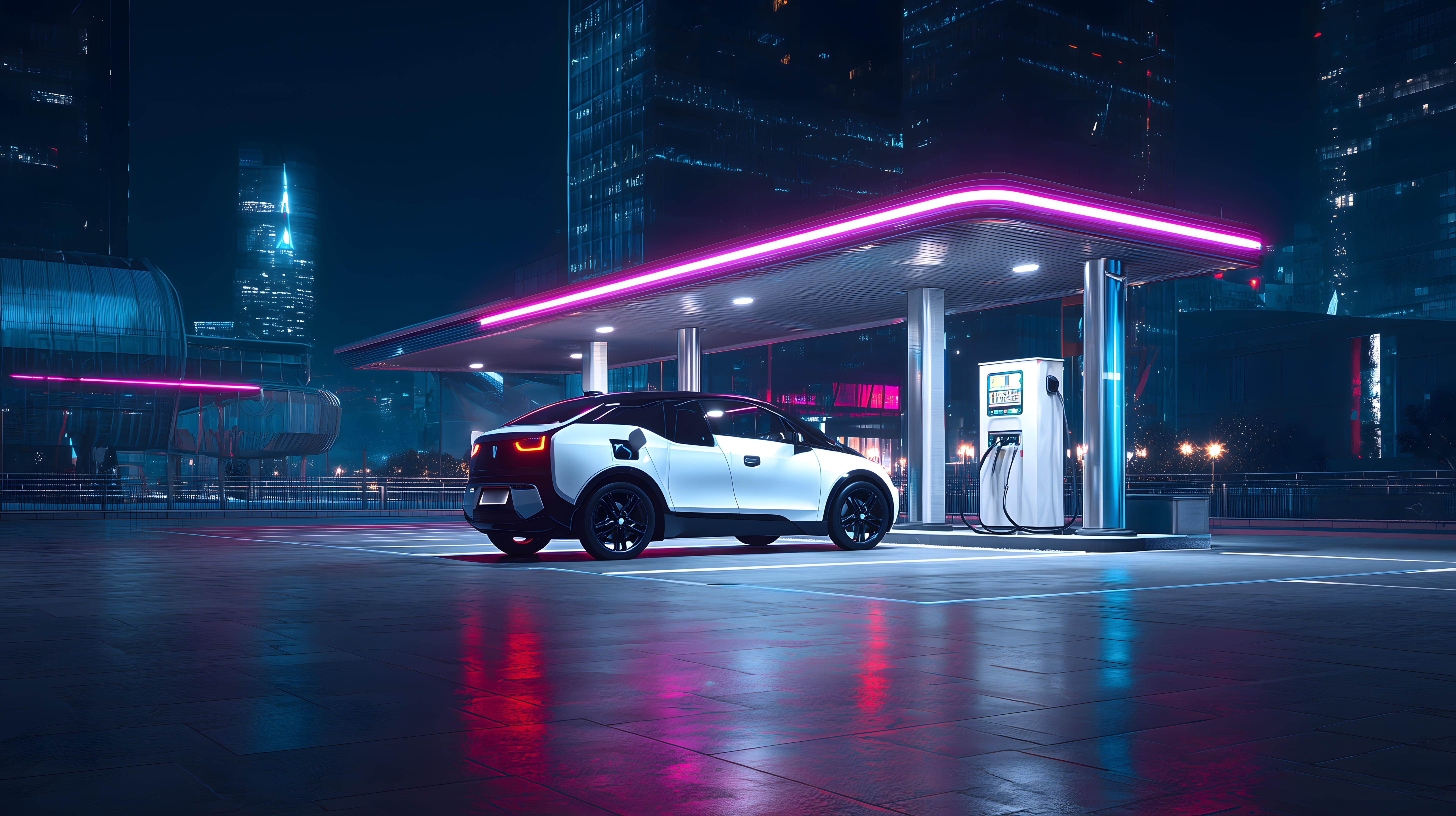 Dieses eindrucksvolle Nachtfoto zeigt eine moderne Elektroauto-Ladestation inmitten einer futuristischen Großstadtkulisse. Das weiße Fahrzeug steht an der beleuchteten Säule und lädt auf, während die Hochhäuser im Hintergrund in einer Mischung aus blauen, pinken und weißen Neonfarben erstrahlen. Die Reflexionen auf dem nassen Boden und die dynamischen Lichtspuren verleihen der Szene eine faszinierende, fast schon cyberpunk-artige Atmosphäre. Dieses kostenlose Stockfoto in hoher Auflösung kann ideal für Blogs, Newsletter, Social-Media-Posts oder Werbematerialien zum Thema Elektromobilität, Nachhaltigkeit und Zukunftstechnologie eingesetzt werden.