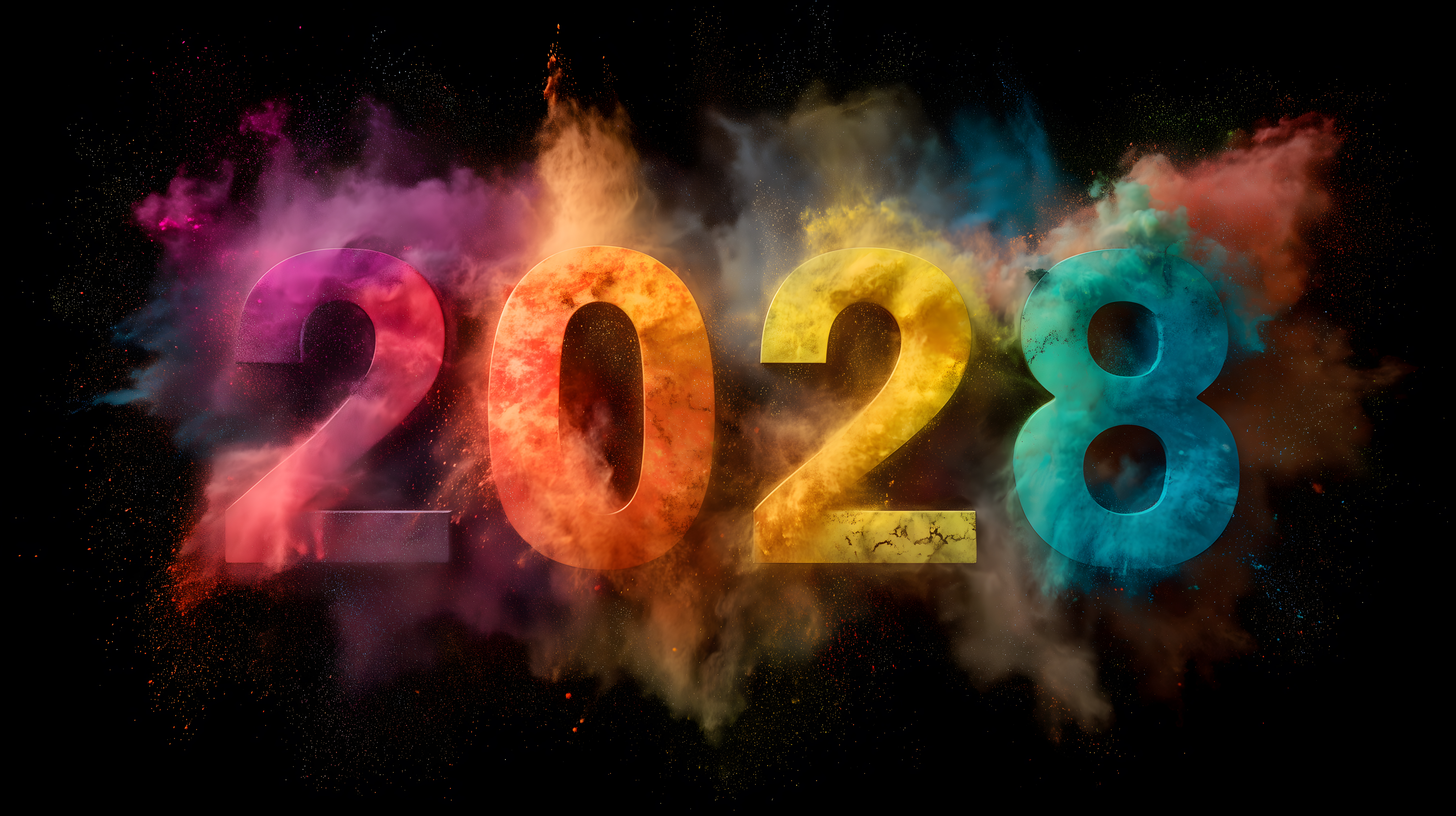 Dieses farbenfrohe Stockfoto zeigt eine atemberaubende Explosion von bunten Pulverwolken, die das neue Jahr 2028 ankündigen. Die Komposition aus überlappenden Farbfeldern in Rot, Orange, Gelb und Türkis vor einem schwarzen Hintergrund erzeugt eine dynamische, abstrakte Atmosphäre. Das Bild eignet sich hervorragend als Hintergrund oder Grafik für Neujahrskampagnen, Blog-Beiträge, Newsletter-Designs oder Social-Media-Posts. Als kostenloses Stockfoto in hoher Auflösung und unter Creative-Commons-Lizenz kann es vielseitig eingesetzt werden.