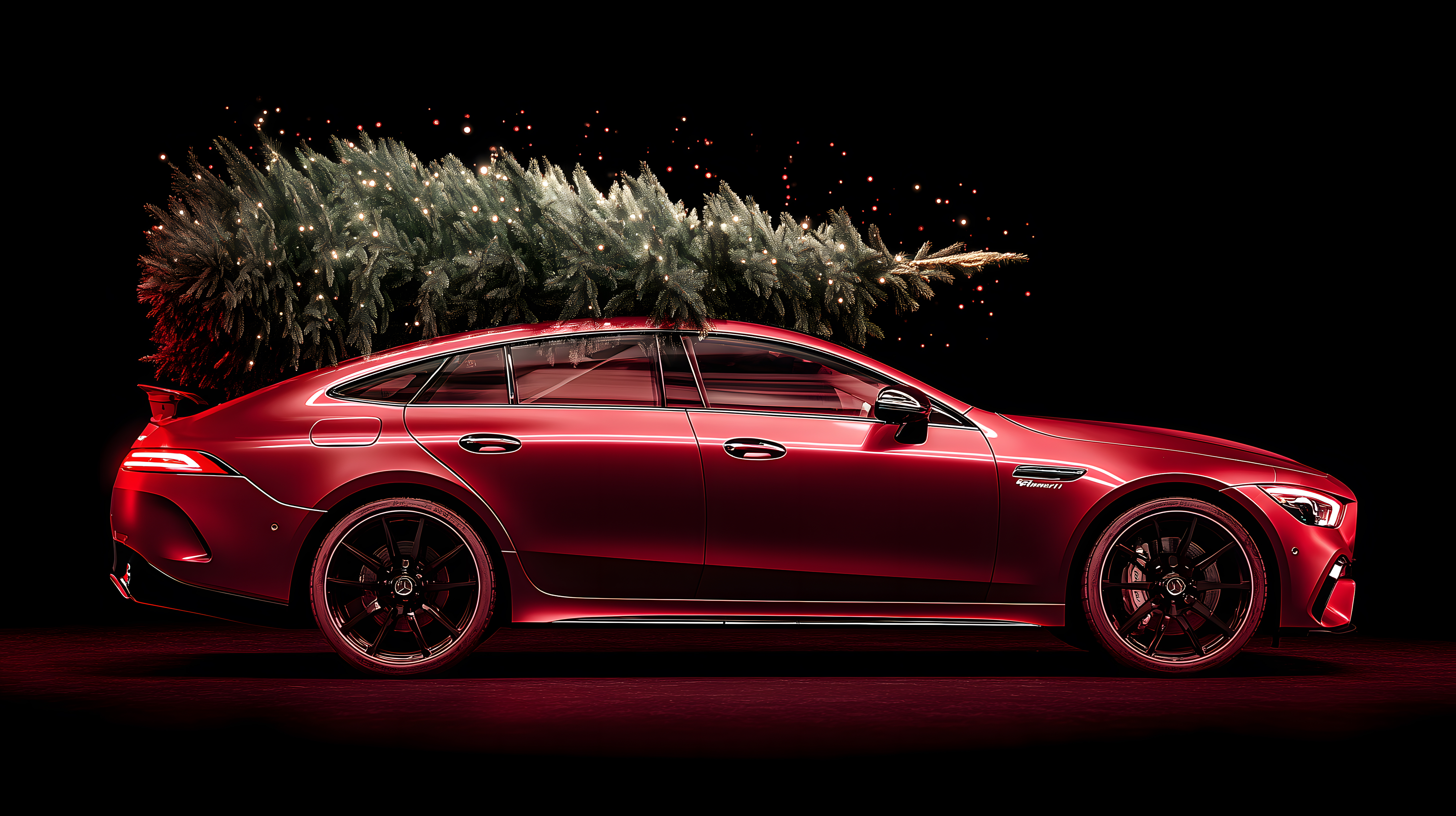 Dieses Foto zeigt ein elegant gestaltetes, rotes Luxusauto mit einem festlichen Weihnachtsbaum auf dem Dach. Das Fahrzeug ist in einem dunklen Umfeld platziert, was den funkelnden Glanz des roten Lacks und die stimmungsvollen Lichteffekte des Weihnachtsbaums optimal zur Geltung bringt. Die Komposition und Beleuchtung des Bildes lassen eine exklusive und hochwertige Atmosphäre entstehen, die perfekt für Weihnachtsgrußkarten, Werbekampagnen oder Magazinbeiträge zur Winterzeit geeignet ist. Dieses hochauflösende Stockfoto steht unter einer Creative-Commons-Lizenz kostenfrei zur Verfügung.