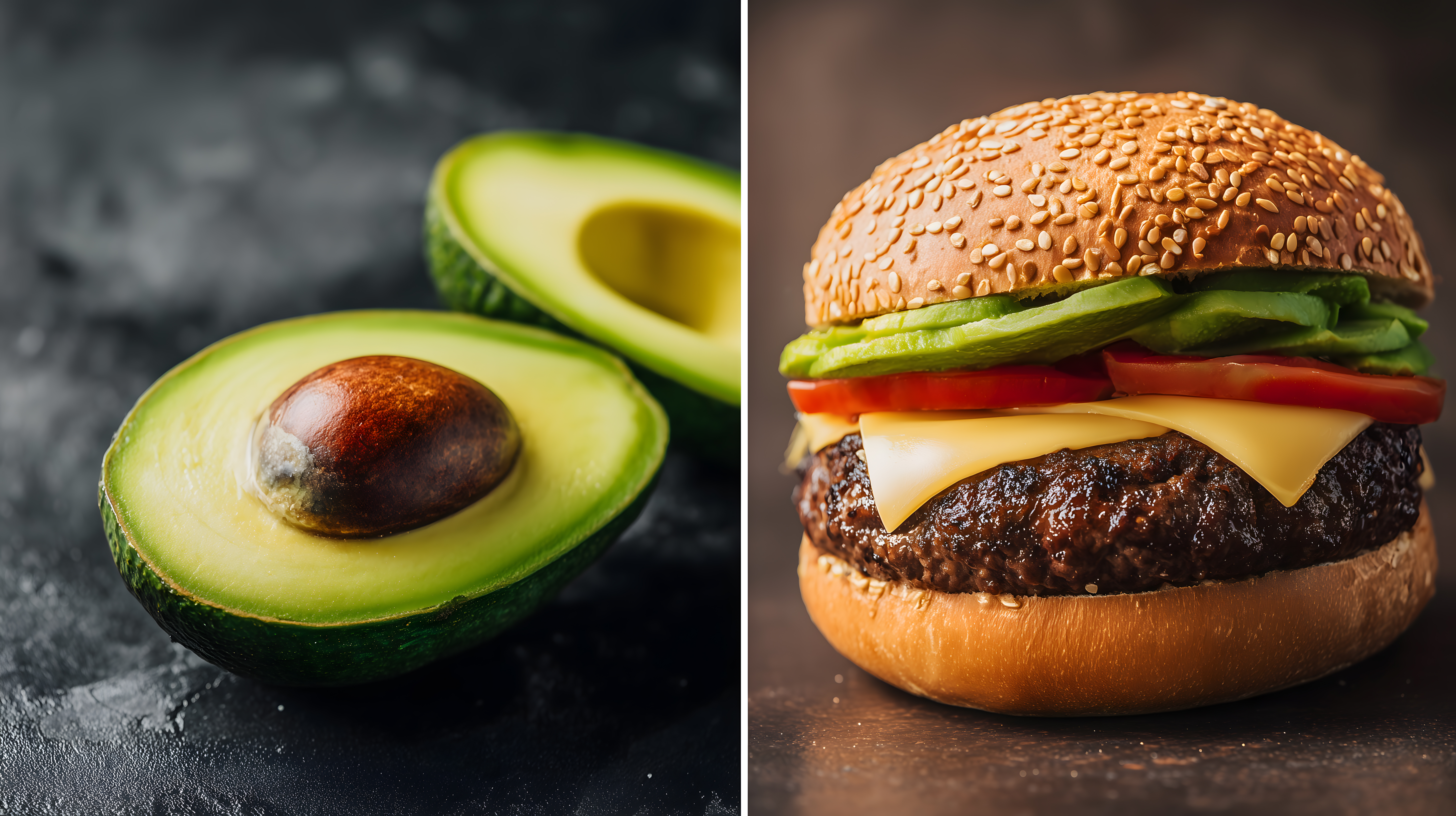 Das Bild zeigt einen appetitlichen Burger mit einer saftigen Fleischfrikadelle, geschmolzenem Käse, frischen Tomaten und Avocadoscheiben. Der Burger hat ein goldbraunes, sessambestücktes Brötchen, das dem Gericht ein rustikales, hochwertiges Aussehen verleiht. Die Anordnung der Zutaten und die scharfe Fokussierung machen das Foto zu einem perfekten Blickfang für Werbe- und Marketingzwecke in den Bereichen Ernährung, Gastronomie oder Lifestyle. Als kostenloses Stockfoto in hoher Auflösung und unter einer Creative-Commons-Lizenz eignet sich dieses Bild hervorragend für Blogs, Websites oder Social-Media-Kanäle.