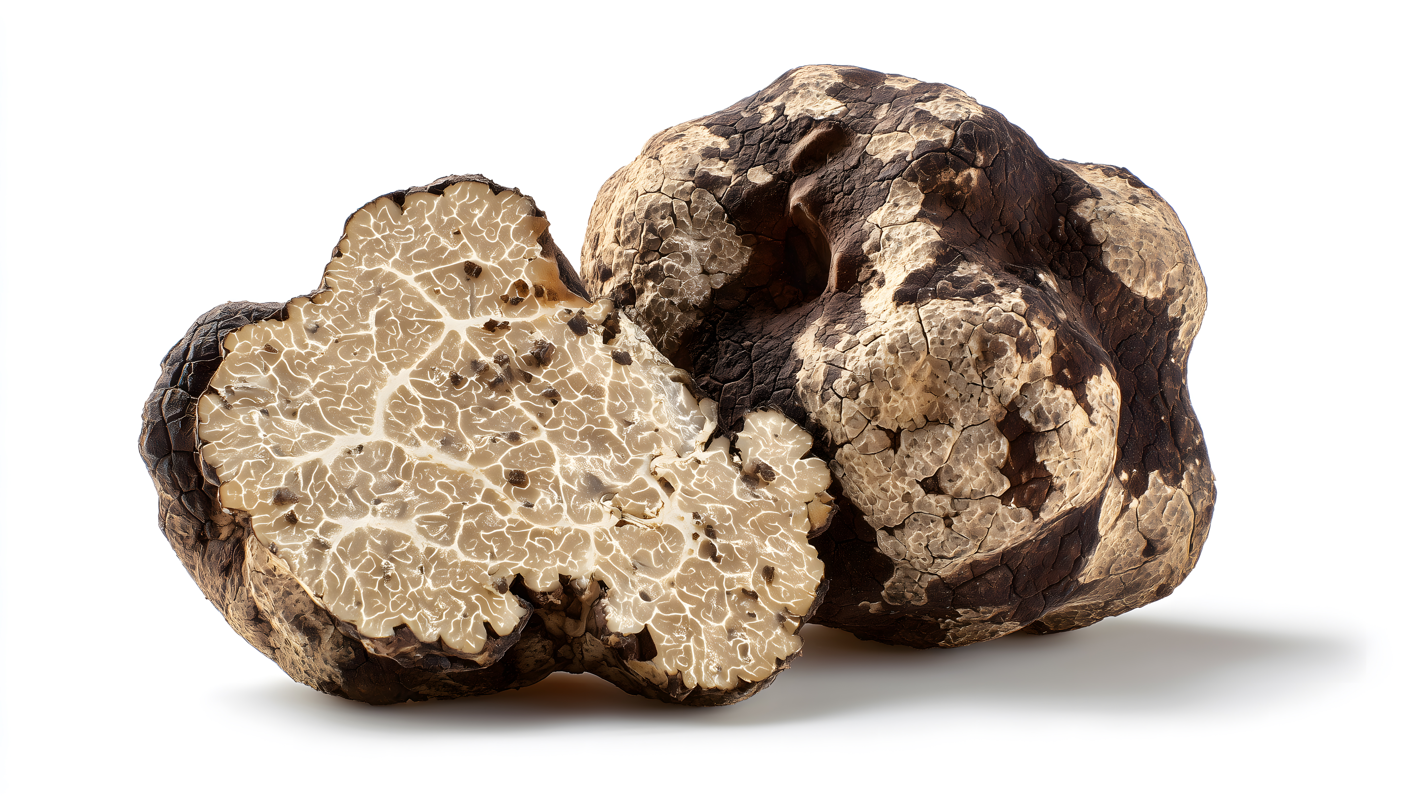 Dieses hochaufgelöste Foto zeigt frische weiße Trüffel, die angeschnitten auf einem weißen Hintergrund liegen. Trüffel sind eine seltene und begehrte Gourmetzutat, die in der Haute Cuisine zum Einsatz kommt. Das Bild eignet sich ideal für die Verwendung in Blogs, Newslettern, Social-Media-Beiträgen oder Werbekampagnen rund um Kochen, Ernährung und exklusive Lebensmittel. Es ist unter einer Creative-Commons-Lizenz verfügbar und kann daher kostenfrei als Stockfoto genutzt werden.