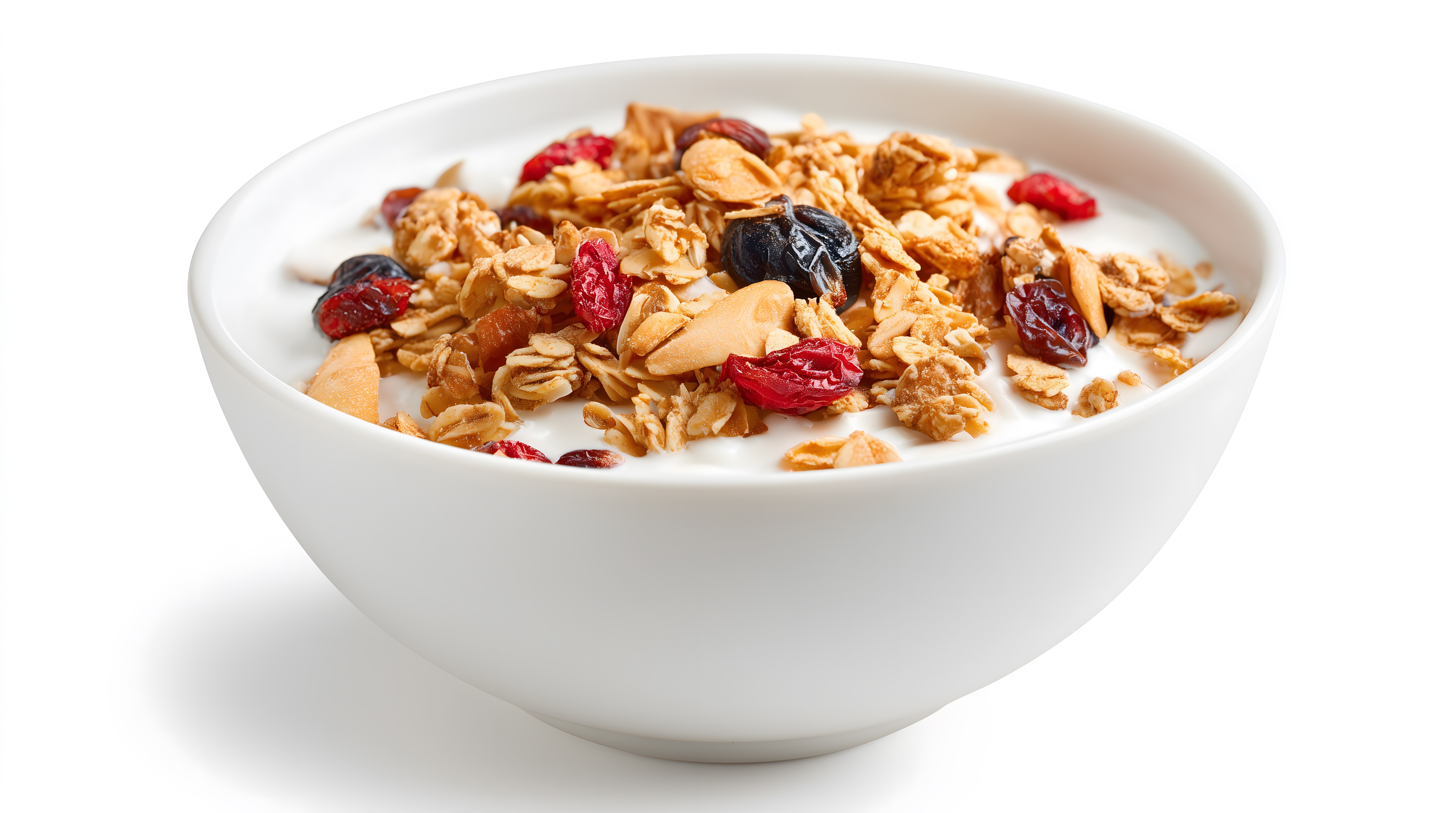 Dieses Foto zeigt eine weiße Schüssel gefüllt mit leckerem, gesundem Müsli. Das Müsli enthält knusprige Granola-Flocken, getrocknete Früchte wie Cranberries und Aprikosen sowie knusprige Nüsse. Darüber ist ein cremiger Joghurt gegossen, der die Zutaten zusammenhält. Das Gericht sieht nicht nur köstlich, sondern auch sehr appetitlich aus. Es eignet sich hervorragend als Bild für Lebensmittel-Blogs, Newsletter oder Social-Media-Beiträge rund um gesunde Ernährung. Dieses hochauflösende Stockfoto steht unter einer Creative-Commons-Lizenz zur Verfügung und kann kostenfrei genutzt werden.