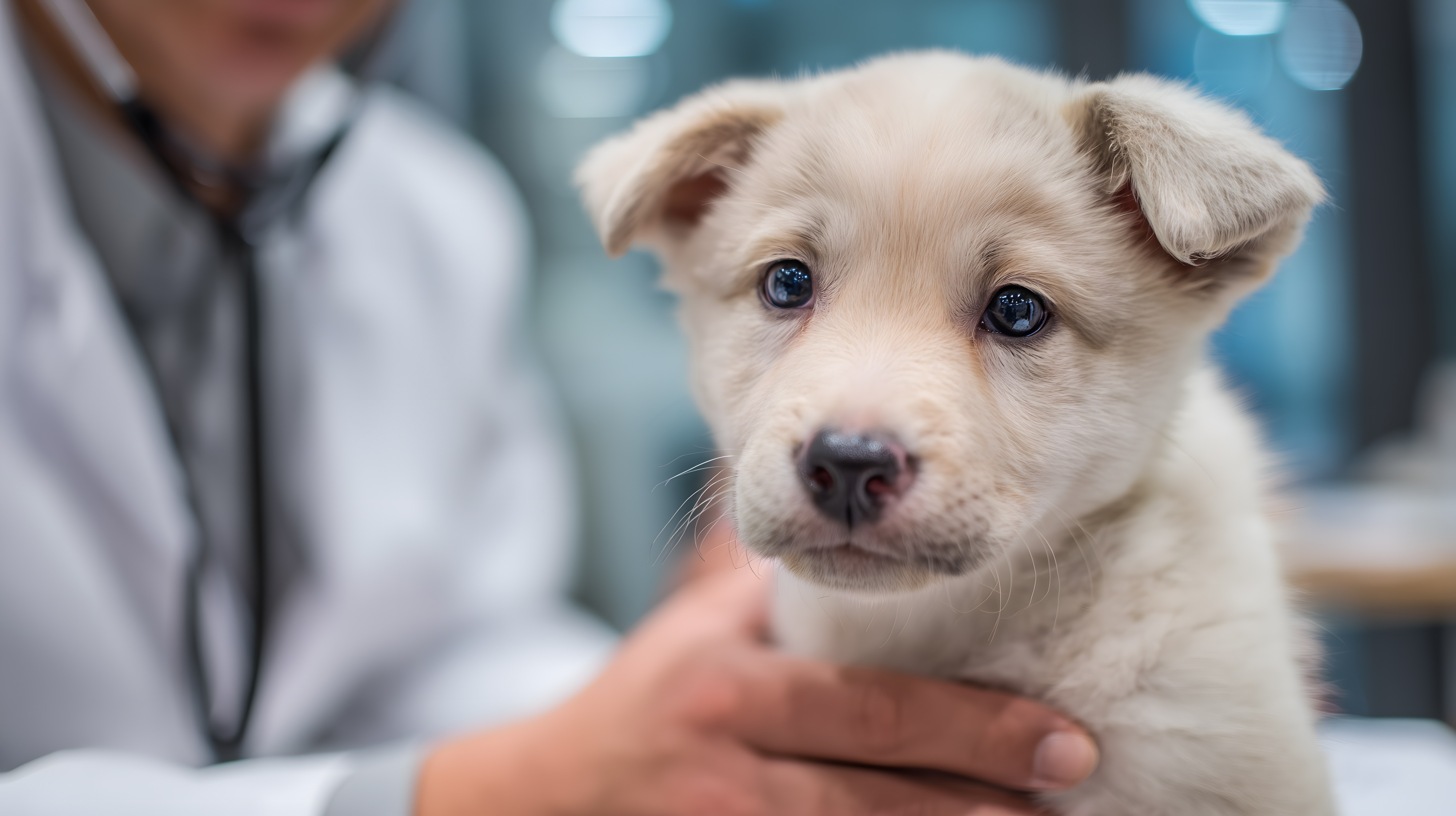 Dieses charmante Foto zeigt einen süßen, weißen Welpen, der bei einer Untersuchung beim Tierarzt ist. Der Hund blickt mit seinen großen, blauen Augen direkt in die Kamera und hat einen vertrauensvollen Gesichtsausdruck. Das Bild ist in einer sanften, pastelligen Farbpalette gehalten, was dem Motiv eine beruhigende und harmonische Atmosphäre verleiht. Das Foto eignet sich hervorragend für den Einsatz in Blogs, Newslettern oder Sozialen Medien rund um Haustiere, Tierwohl und Veterinärmedizin. Als kostenloses Stockfoto in hoher Auflösung und unter Creative-Commons-Lizenz ist es frei verwendbar.