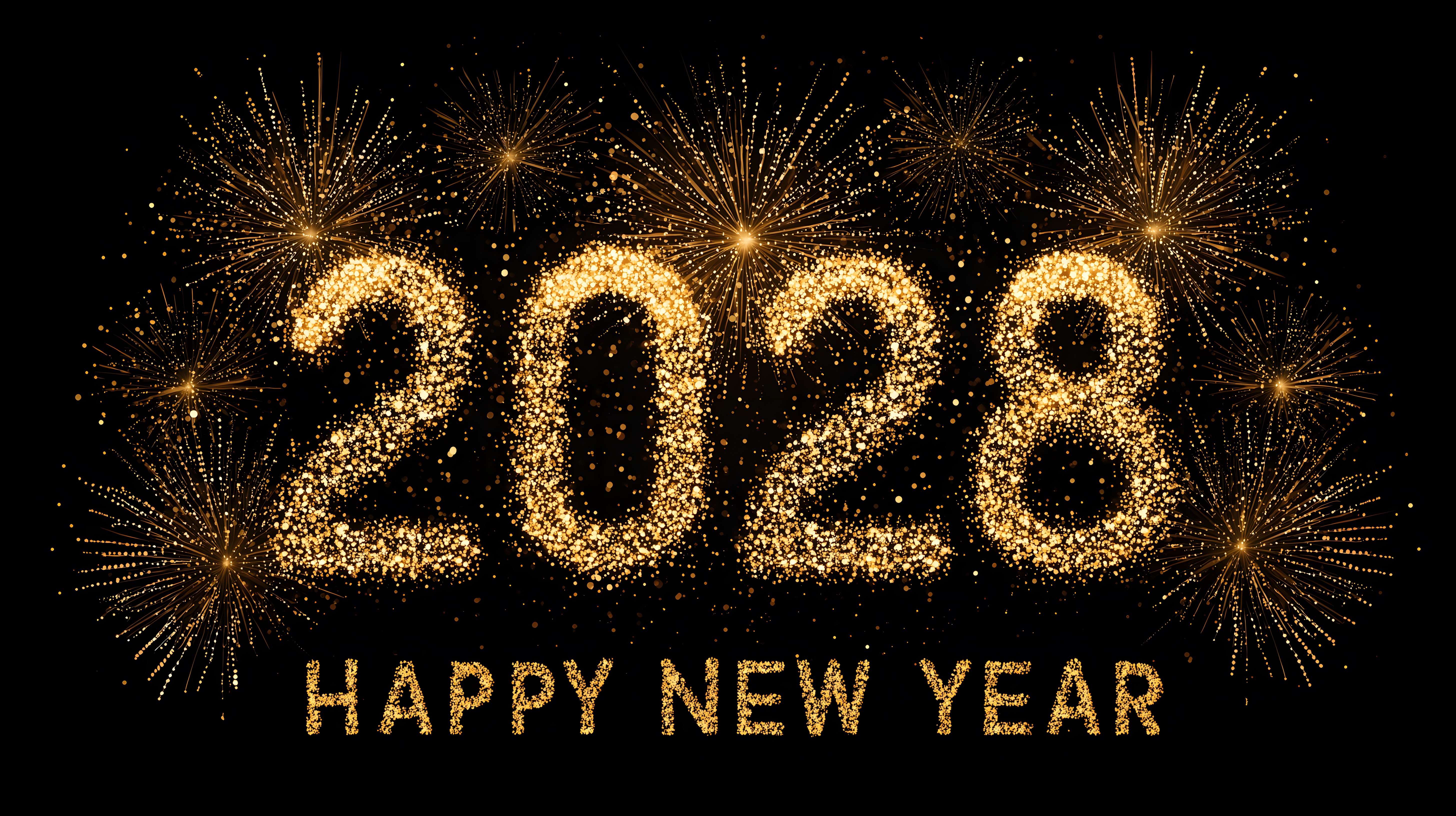 Das Foto zeigt ein spektakuläres Neujahrsfeuerwerk mit funkelnden goldenen Explosionstexturen und einem großen '2028'-Schriftzug vor einem schwarzen Hintergrund. Die leuchtenden Feuerwerkseffekte und glitzernden Partikel verleihen dem Bild einen festlichen, freudigen Charakter und sind perfekt für die Verwendung in Neujahrskampagnen, Blog-Beiträgen, Newsletter-Designs oder für Social-Media-Posts geeignet. Dieses hochauflösende Stockfoto ist unter einer Creative-Commons-Lizenz frei nutzbar.