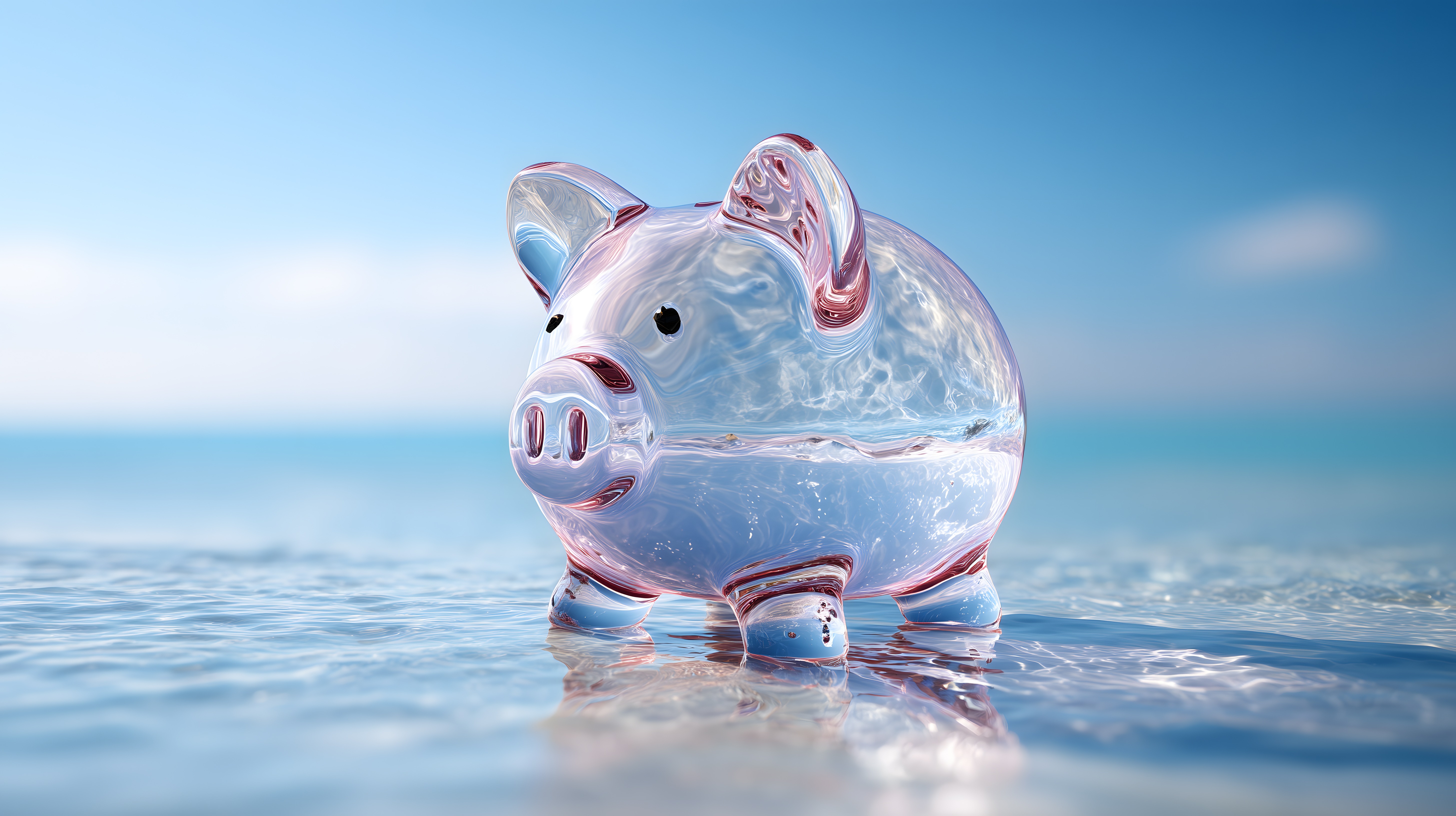 Dieses Foto zeigt ein transparentes Sparschwein, das im seichten Wasser eines Meeres oder Ozeans steht. Das Sparschwein ist aus Glas oder einem ähnlichen Material gefertigt und reflektiert den blauen Himmel über ihm. Der Hintergrund ist verschwommen, was den Fokus auf das Hauptobjekt lenkt. Die Transparenz des Sparschweins erzeugt einen minimalistischen und surrealen Eindruck. Dieses Bild eignet sich hervorragend für den Einsatz in Blogs, Newsletters, Social-Media-Beiträgen oder Werbematerialien, die sich mit Themen wie Finanzen, Ersparnisse, Sparsamkeit oder Minimalismus befassen. Als kostenloses, hochauflösendes Stockfoto unter einer Creative-Commons-Lizenz steht es für viele kreative Projekte zur Verfügung.