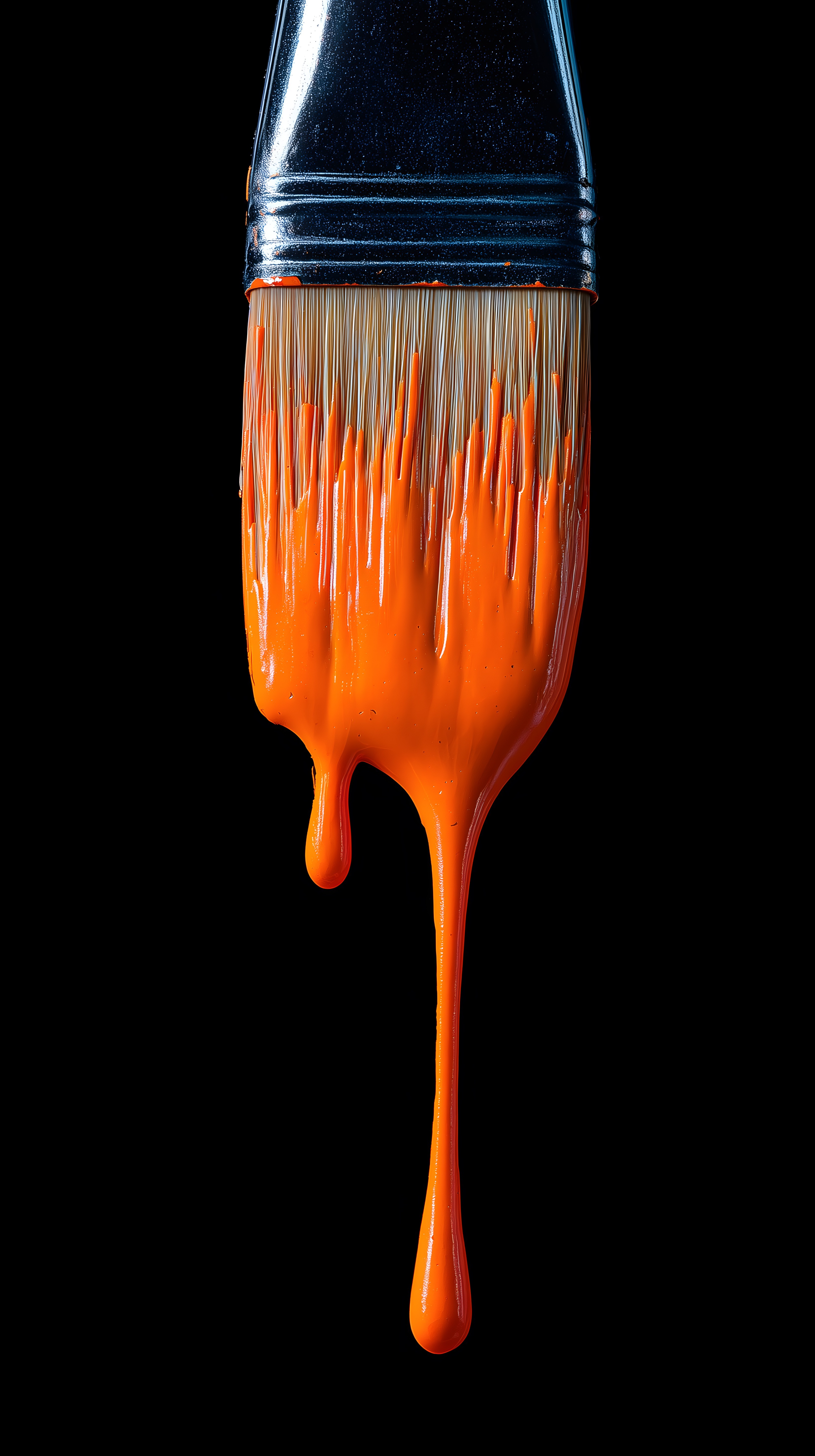 Dieses fesselnde Bild zeigt einen Malerpinsel, der mit tropfender, leuchtend orangefarbener Farbe beladen ist. Der Kontrast zwischen dem dunklen Hintergrund und den lebendigen Farbspritzern erzeugt eine kraftvolle, abstrakte Ästhetik. Das Foto eignet sich hervorragend als kostenloses Stockfoto für eine Vielzahl von Anwendungen, wie beispielsweise Blogbeiträge zu Themen rund um Malerei, Renovation, Handwerk oder Kreativität. Die hohe Bildauflösung und die Creative-Commons-Lizenz ermöglichen eine flexible und vielfältige Nutzung.