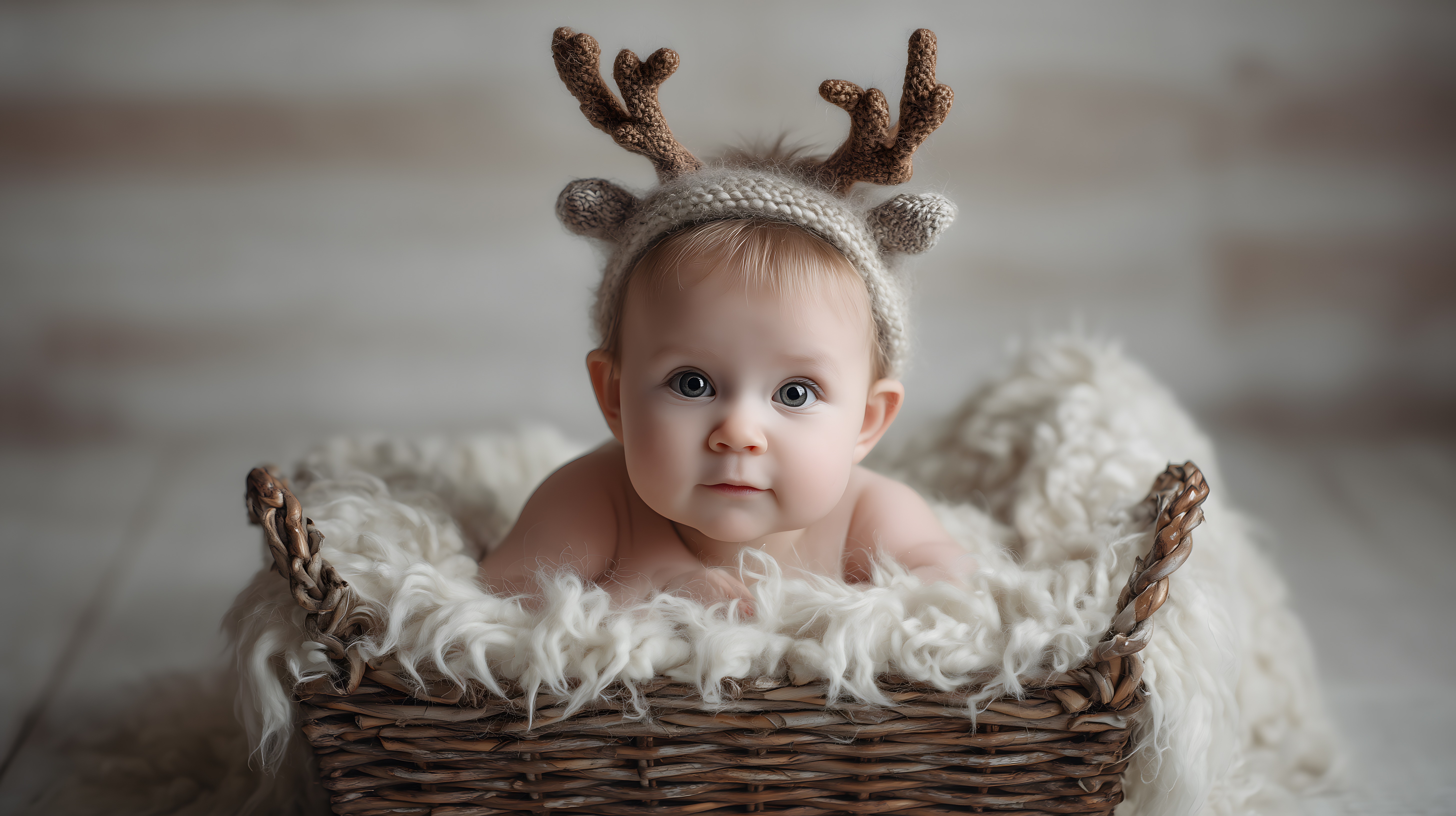 Dieses bezaubernde Foto zeigt ein süßes, lächelndes Baby in einem Korb, das eine Geweih-Mütze trägt. Das Baby liegt umgeben von flauschigem, weißem Fell, was eine gemütliche, winterliche Stimmung schafft. Die sanfte Beleuchtung und der Fokus auf das Baby machen dieses Bild zu einem perfekten Motiv für Weihnachts- oder Winterkampagnen, Grußkarten, Babyfotografie und vieles mehr. Als kostenloses Stockfoto in hoher Auflösung und unter Creative Commons-Lizenz kann es vielseitig und ohne Einschränkungen genutzt werden.