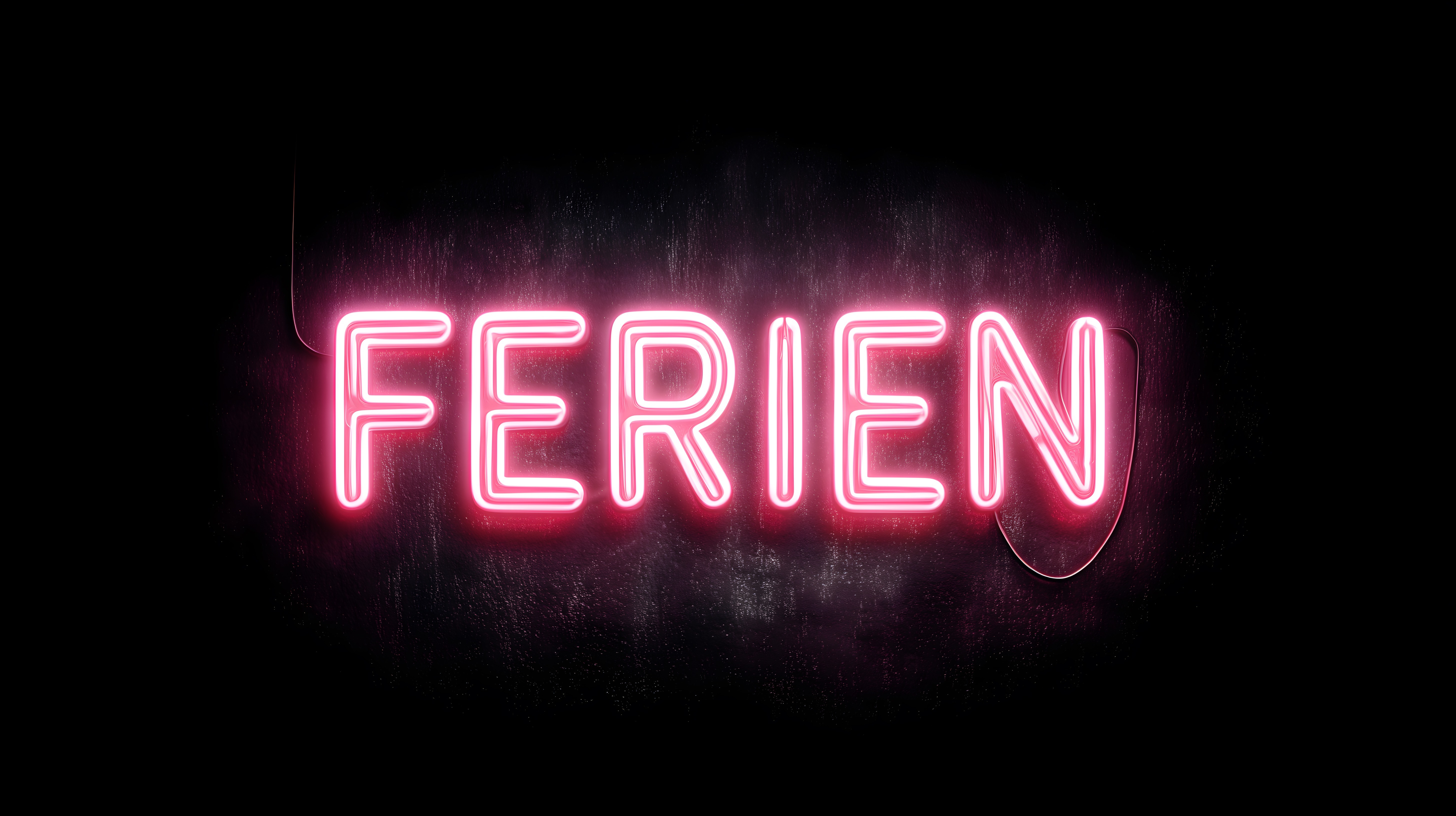 Das Bild zeigt eine beeindruckende Nahaufnahme eines leuchtenden Neon-Schriftzugs mit dem Wort 'FERIEN' vor einem dunklen Hintergrund. Die strahlend pinken und lilanen Buchstaben heben sich kontrastreich vom schwarzen Hintergrund ab und verleihen der Szene eine moderne, mystische Ausstrahlung. Der Schriftzug ist zentral platziert und nimmt den Großteil des Bildraums ein, was den Fokus des Betrachters klar auf das Hauptsujet lenkt. Dieses farbintensive und grafisch gestaltete Motiv eignet sich hervorragend als hochwertiges Stockfoto für verschiedenste Einsatzzwecke - sei es für Reise-, Urlaubs- oder Sommerprodukte, für Werbung, Social-Media-Beiträge oder kreative Blogbeiträge. Das kostenlos verfügbare Bild ist in hoher Auflösung unter einer Creative-Commons-Lizenz erhältlich.