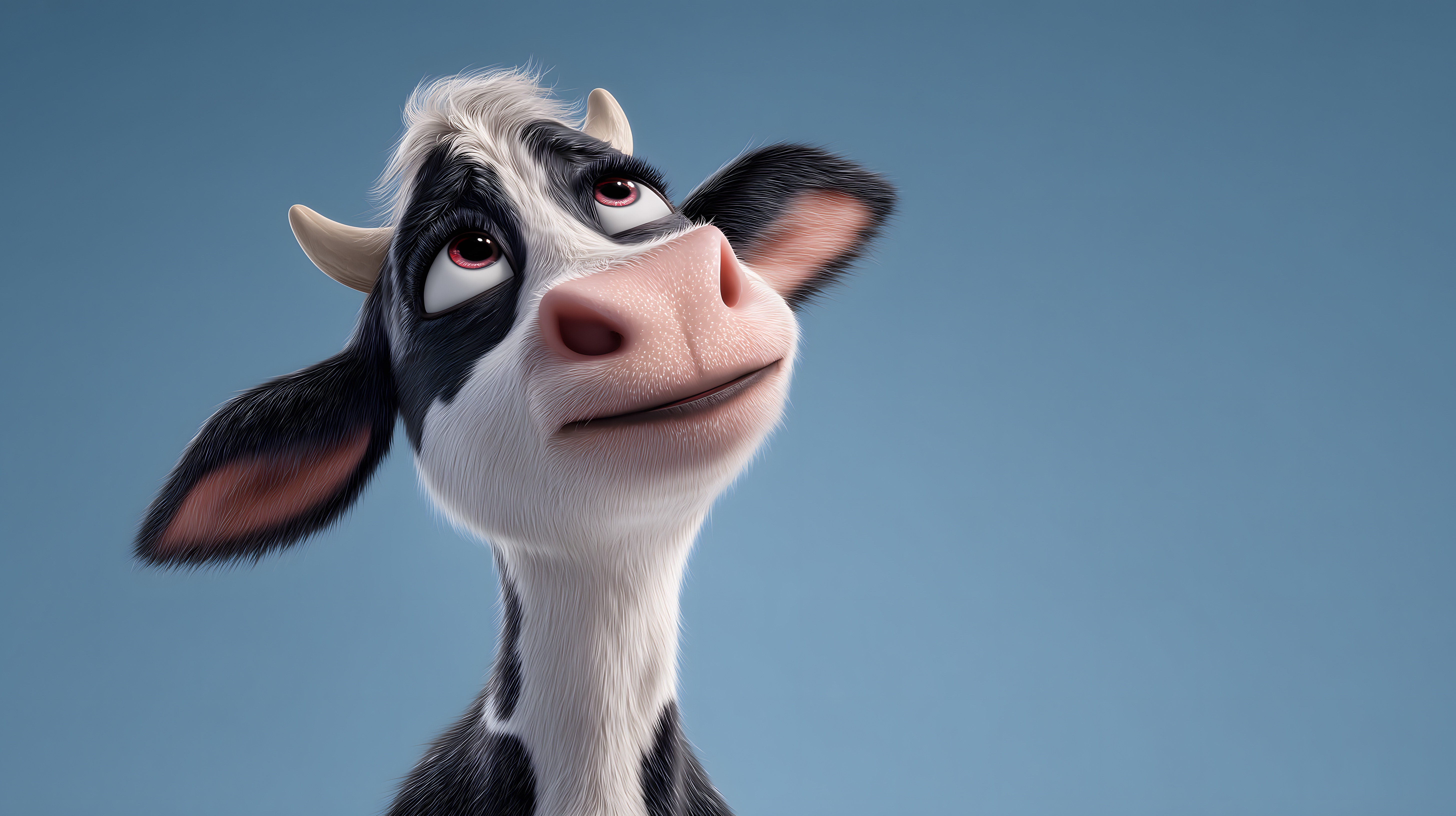 Diese fröhliche Cartoon-Kuh in bunter 3D-Illustration zeigt ein niedliches, charakteristisches Kuhgesicht mit großen Augen und einem freundlichen Ausdruck. Die Kuh hebt sich durch ihre detailreiche Darstellung und lebendige Farbgebung vor dem einfarbigen, blauen Hintergrund ab. Das hochauflösende Bild eignet sich hervorragend für Verwendungen in Werbung, Blogbeiträgen oder Social-Media-Kanälen und steht unter einer Creative-Commons-Lizenz kostenlos zur Verfügung.