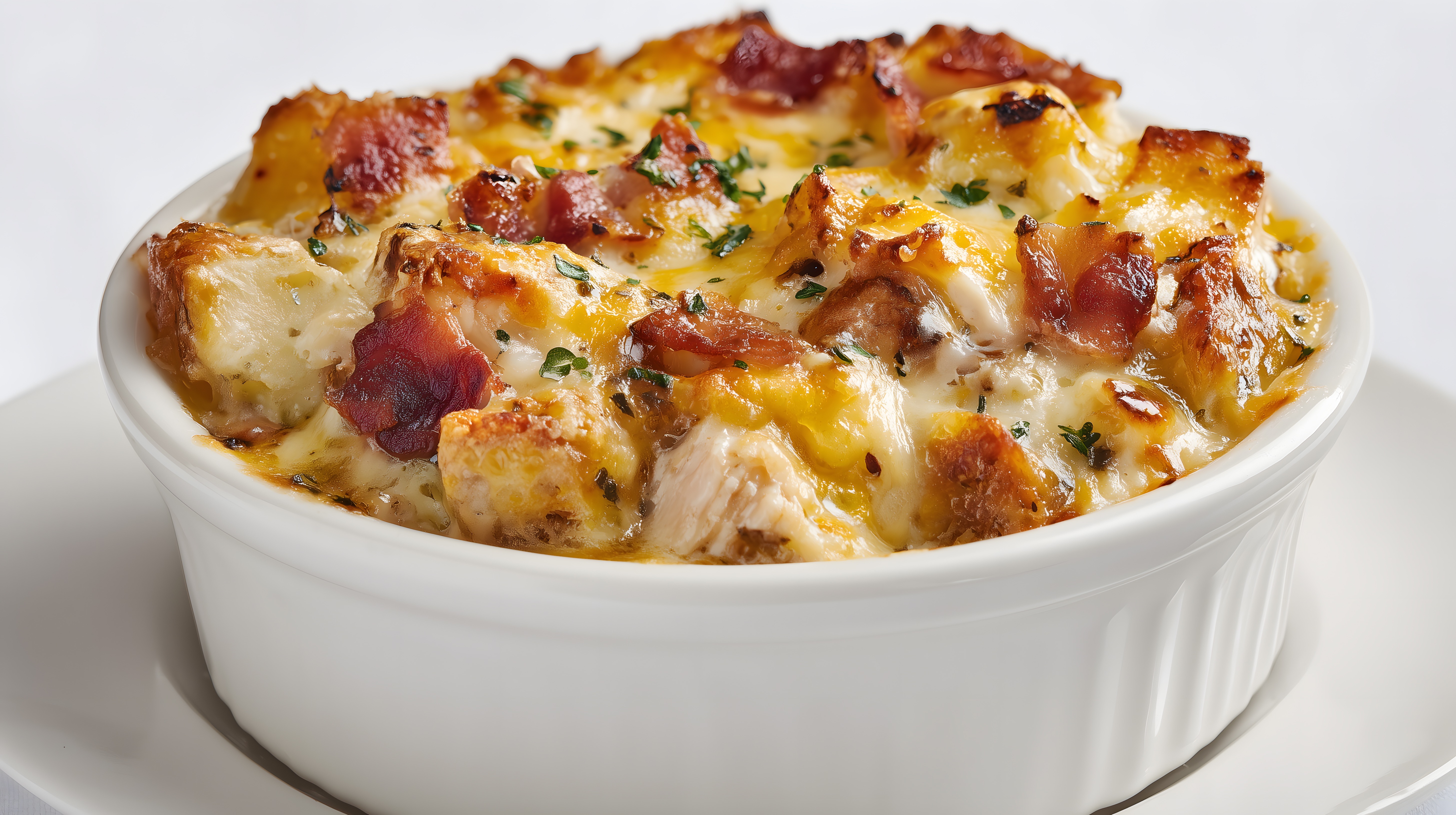 Diese Aufnahme zeigt einen leckeren, üppigen Kartoffelauflauf mit würzigem Bacon und geschmolzenem Käse. Die Schüssel ist vor einem hellen, neutralen Hintergrund platziert, wodurch die goldbraune, knusprige Oberfläche des Gerichts besonders einladend zur Geltung kommt. Der Auflauf scheint frisch aus dem Ofen zu kommen und verströmt einen verlockenden Geruch. Dieses Foto eignet sich hervorragend als kostenloses Stockfoto für Rezeptblogs, Kochportale oder Food-Websites in hoher Auflösung und unter Creative-Commons-Lizenz.