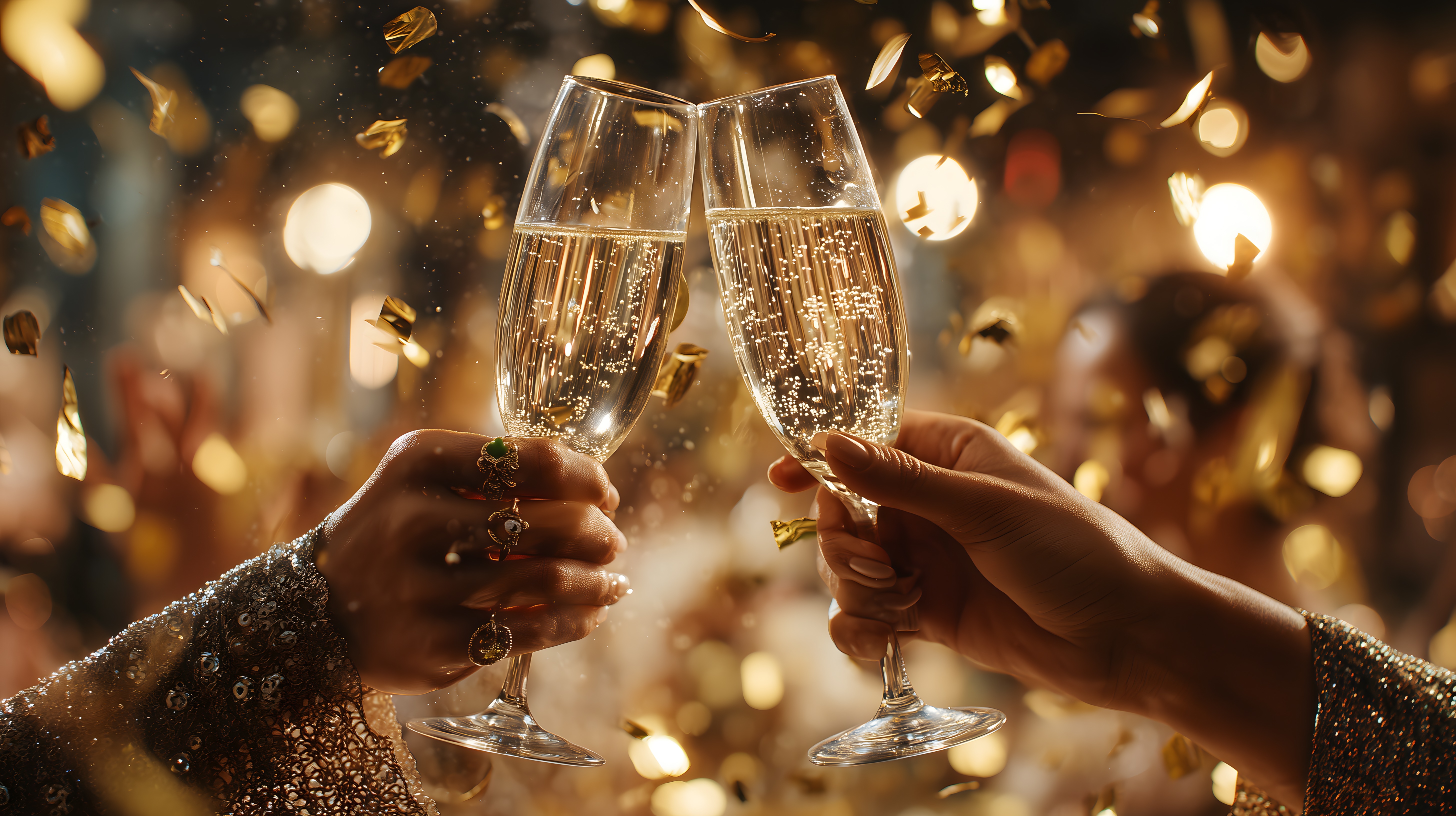 Dieses prachtvoll inszenierte Foto zeigt zwei Champagner-Gläser, die vor einem stimmungsvollen, golden-funkelnden Hintergrund angestoßen werden. Die Gläser sind mit winzigen Blasen und Lichtreflexionen überzogen, was eine festliche, feierliche Stimmung vermittelt. Das Bild eignet sich hervorragend für die Gestaltung von Werbematerial, Blogbeiträgen oder Social-Media-Posts rund um Feiern, Partys, Jubiläen oder den Jahreswechsel. Als hochwertiges Stockfoto in hoher Auflösung und unter der Creative-Commons-Lizenz kann es kostenfrei für vielfältige Zwecke genutzt werden.