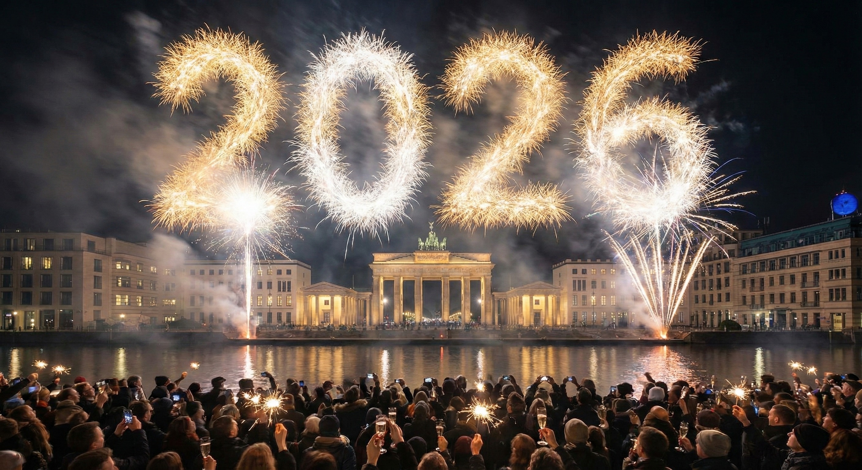 Dieses beeindruckende Foto zeigt eine große Menschenansammlung vor dem beleuchteten Brandenburger Tor in Berlin während der Silvesterfeierlichkeiten des Jahres 2026. Die Menge ist umgeben von farbenfrohen Feuerwerken, die den Nachthimmel erhellen und eine festliche Stimmung verbreiten. Das Bild zeichnet sich durch seine detailreiche Komposition, die Vielfalt an Farben und Lichteffekten sowie die lebendige Atmosphäre aus. Es eignet sich hervorragend als kostenfreies Stockfoto für Blogs, Newsletter, Social-Media-Beiträge und Werbematerial rund um den Jahreswechsel, Silvester und die Stadt Berlin. Die hohe Auflösung und die Creative-Commons-Lizenz bieten maximale Flexibilität bei der Nutzung.