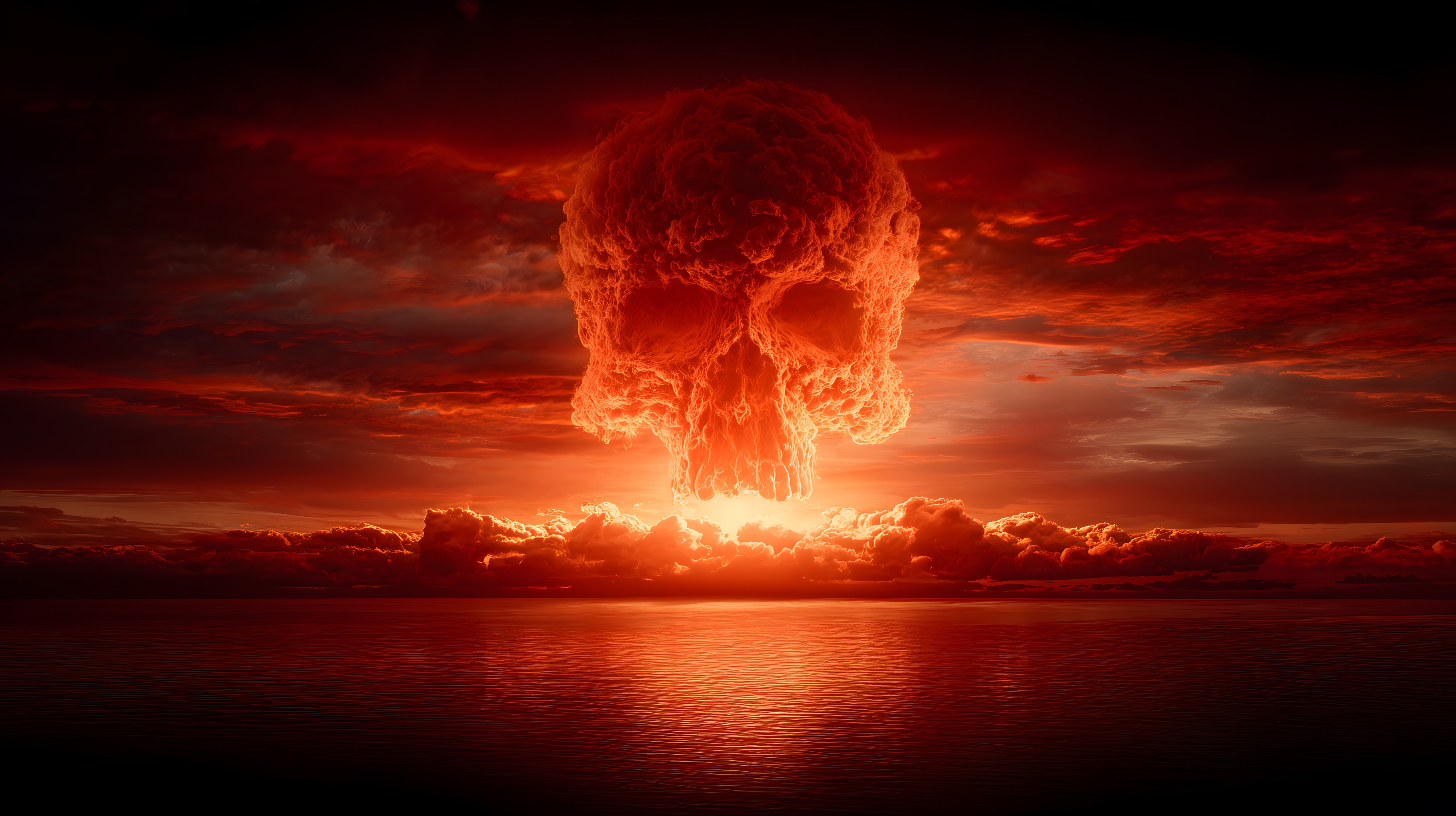 Das Bild zeigt eine apokalyptische Szene einer riesigen, pilzförmigen Atomexplosion, die sich am Horizont über einem roten, glühenden Meer abzeichnet. Die Szene ist in dramatische, warme Rottöne getaucht und vermittelt eine Stimmung von drohender Zerstörung und Vergänglichkeit. Der riesige Atompilz-Schatten, der sich über das Wasser legt, verstärkt den Eindruck der Verwüstung und des Untergangs. Das Foto könnte für Zwecke wie Katastrophen-Berichterstattung, Science-Fiction-Illustrationen oder Warnbotschaften rund um Atomwaffen verwendet werden. Es handelt sich um ein kostenloses Stockfoto in hoher Auflösung, das unter einer Creative-Commons-Lizenz zur Verfügung steht.
