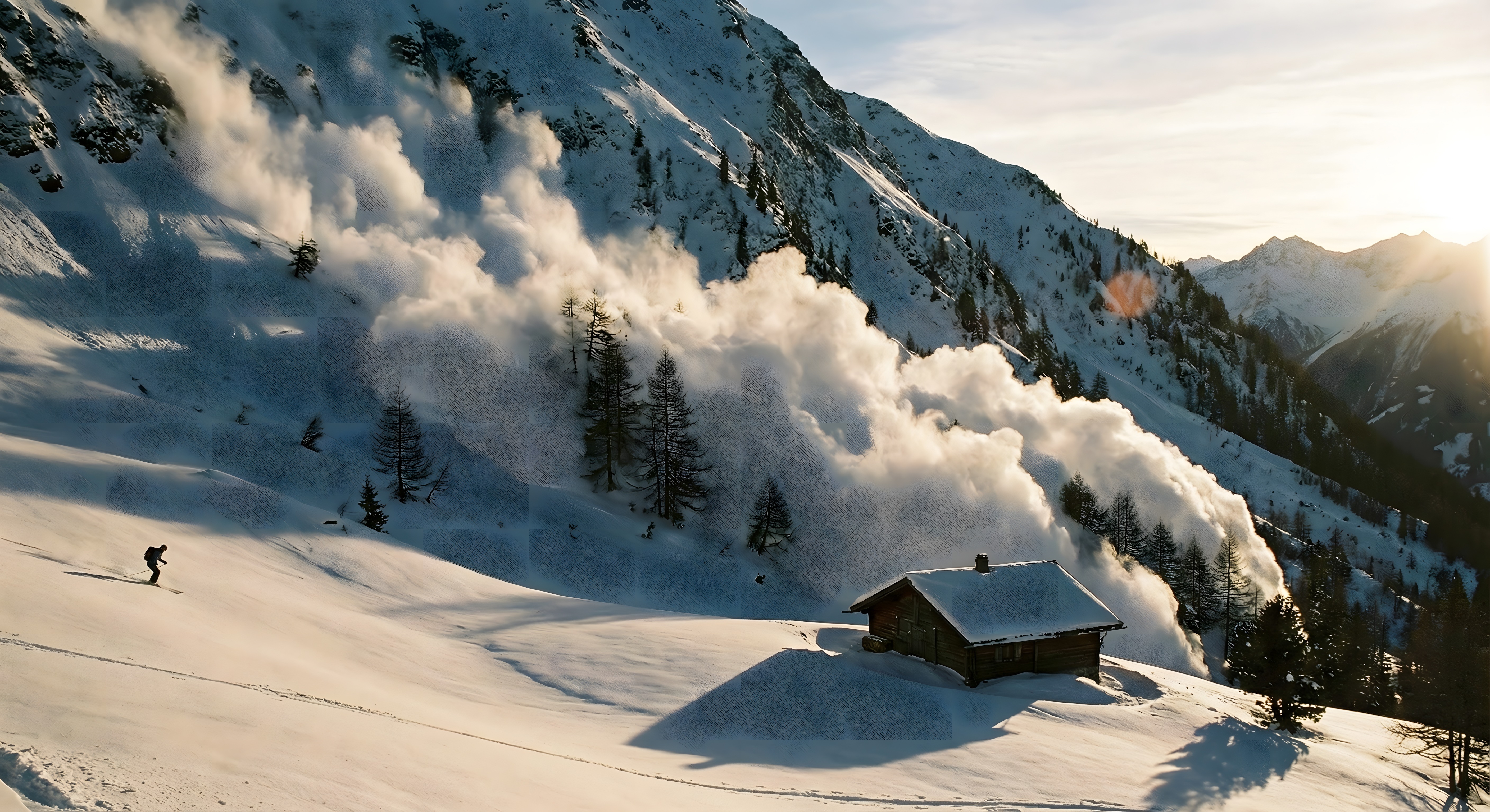 Dieses atemberaubende Foto zeigt eine dramatische Schneelandschaft mit einer stürmenden Lawine, die sich den steilen Berghang hinunterwälzt. Die mächtigen schneebedeckten Gipfel ragen majestätisch in den Himmel empor, während dicke Wolken die Szenerie umhüllen. Ein einsamer Skifahrer ist im Vordergrund zu sehen, der die Größe und Kraft der Natur erahnen lässt. Dieses beeindruckende Wintermotiv eignet sich perfekt für Blog-Beiträge, Newsletter-Designs oder als stimmungsvolles Hintergrundbild in sozialen Medien. Als kostenloses Stockfoto in hoher Auflösung und unter Creative-Commons-Lizenz ist es frei nutzbar.